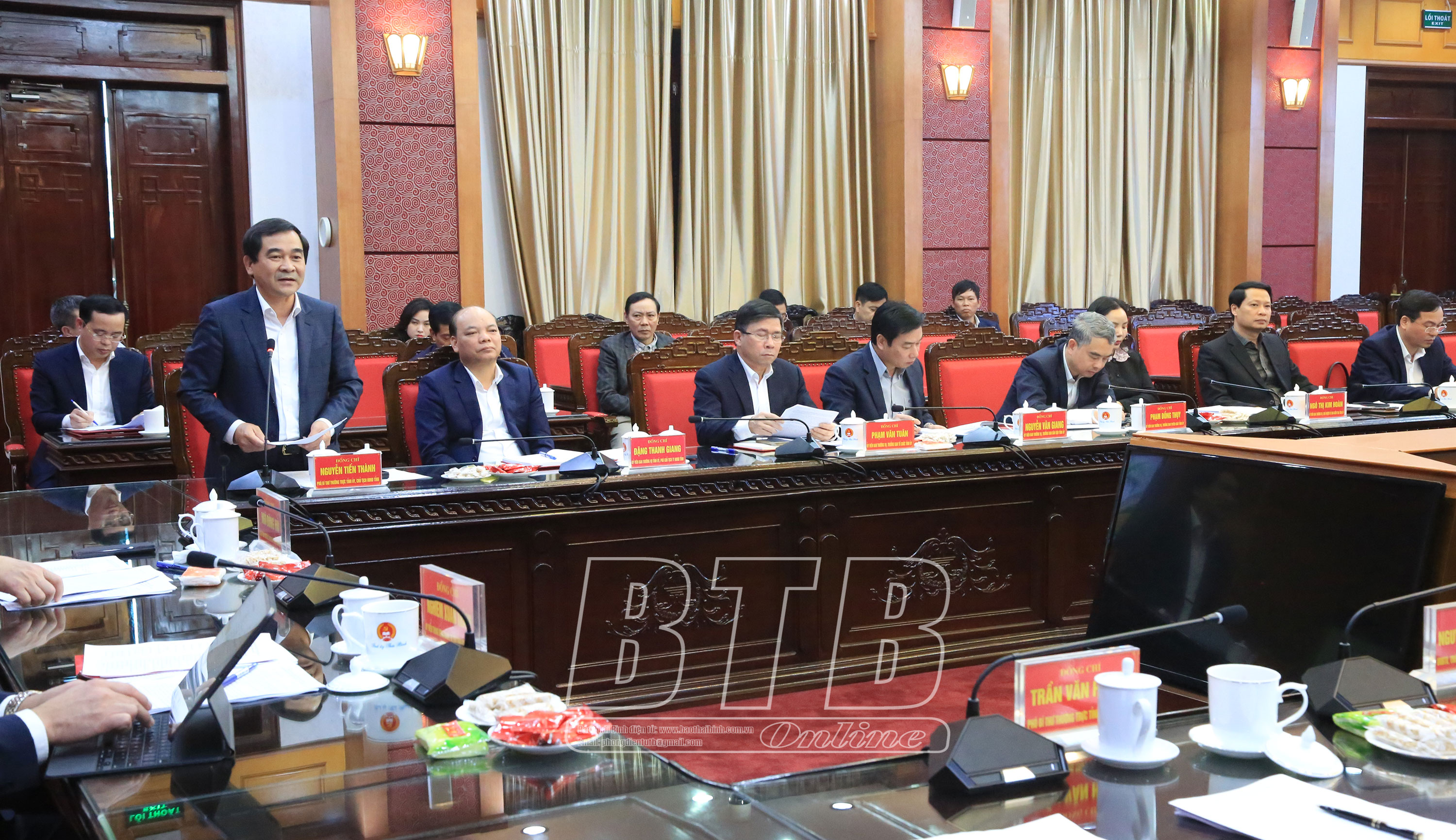 Đồng chí Nguyễn Tiến Thành, Phó Bí thư thường trực Tỉnh ủy, Chủ tịch HĐND tỉnh phát biểu tại buổi làm việc.