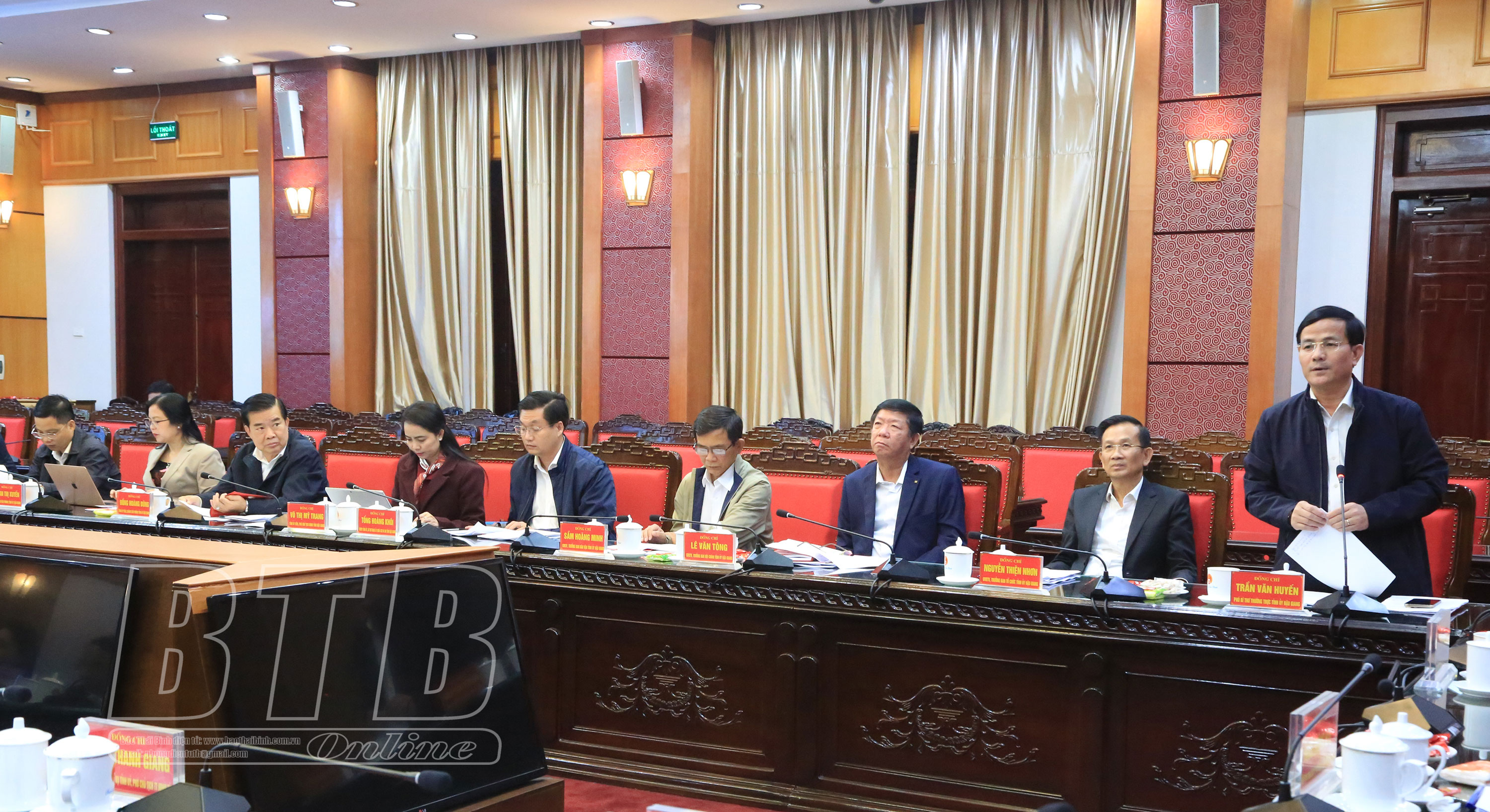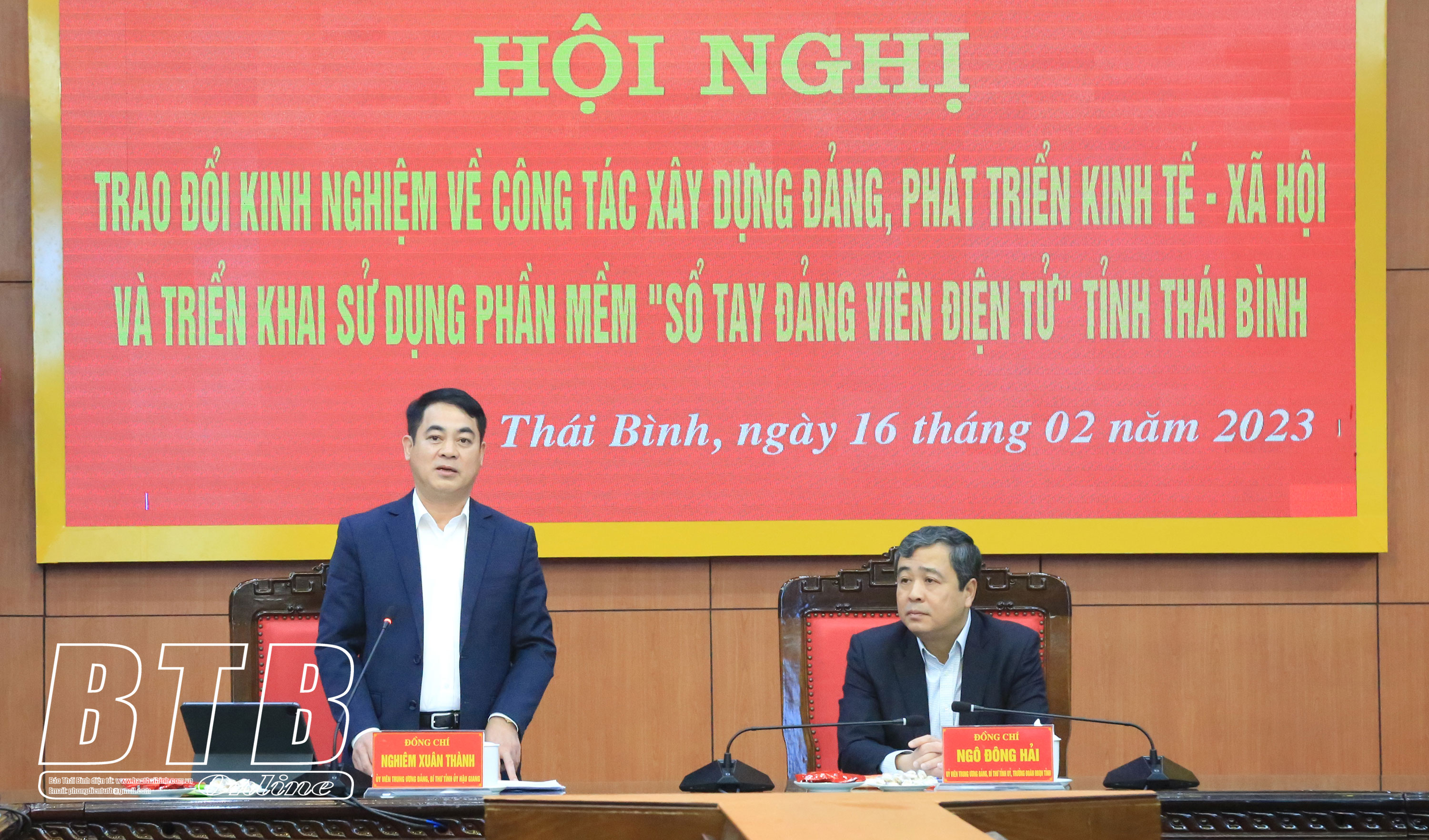 Chiều ngày 16/2, Thường trực Tỉnh ủy làm việc với đoàn công tác của tỉnh Hậu Giang do đồng chí Nghiêm Xuân Thành, Ủy viên Ban Chấp hành Trung ương Đảng, Bí thư Tỉnh ủy làm trưởng đoàn trao đổi kinh nghiệm về công tác xây dựng Đảng, phát triển kinh tế - xã hội và triển khai sử dụng phần mềm “Sổ tay đảng viên điện tử” tỉnh Thái Bình. Tiếp và làm việc với đoàn có các đồng chí: Ngô Đông Hải, Ủy viên Ban Chấp hành Trung ương Đảng, Bí thư Tỉnh ủy; Nguyễn Tiến Thành, Phó Bí thư thường trực Tỉnh ủy, Chủ tịch HĐND tỉnh; các đồng chí Ủy viên Ban Thường vụ Tỉnh ủy, lãnh đạo HĐND, UBND tỉnh.