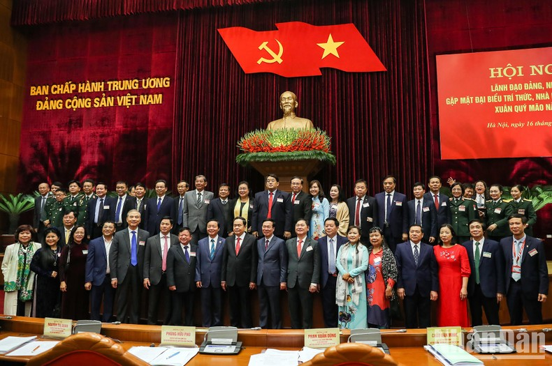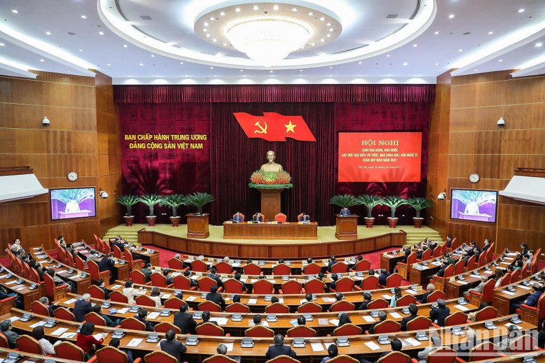 Quang cảnh Hội nghị lãnh đạo Đảng, Nhà nước gặp mặt đại biểu trí thức, nhà khoa học, văn nghệ sĩ Xuân Quý Mão 2023. (Ảnh: Đăng Anh).