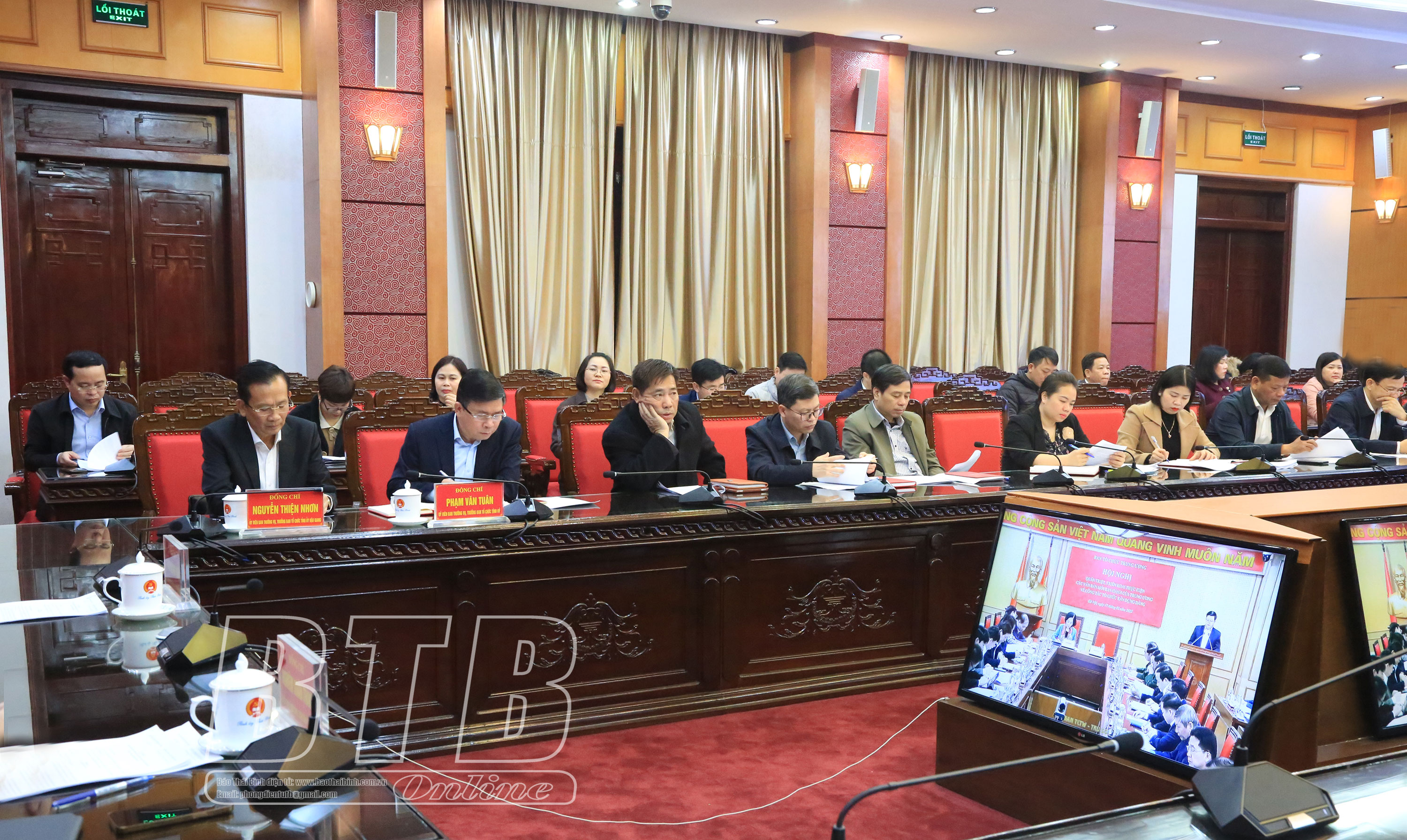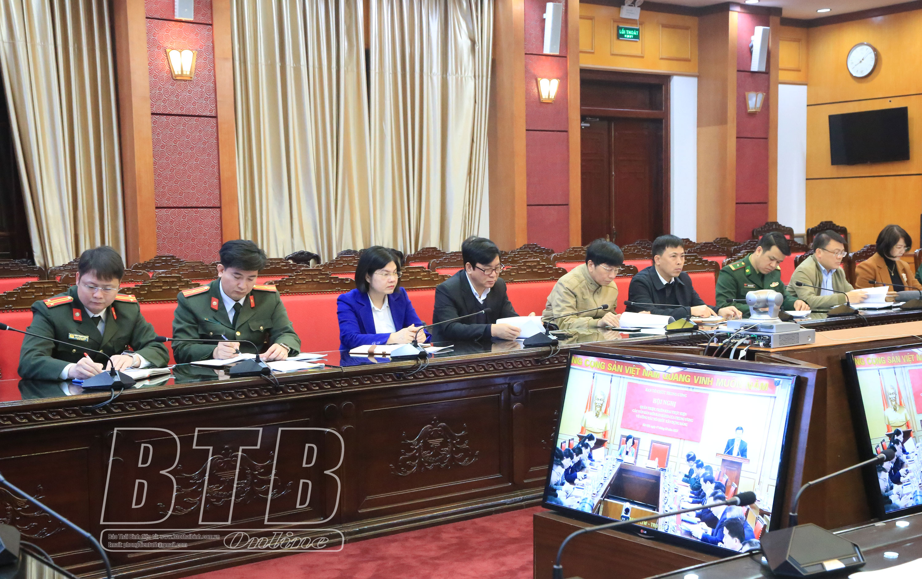 Dự hội nghị tại điểm cầu Thái Bình có các đồng chí: Ngô Đông Hải, Ủy viên Ban Chấp hành Trung ương Đảng, Bí thư Tỉnh ủy; Phạm Văn Tuân, Ủy viên Ban Thường vụ, Trưởng ban Tổ chức Tỉnh ủy. Về phía tỉnh Hậu Giang có các đồng chí: Nghiêm Xuân Thành, Ủy viên Ban Chấp hành Trung ương Đảng, Bí thư Tỉnh ủy; Nguyễn Thiện Nhơn, Ủy viên Ban Thường vụ, Trưởng ban Tổ chức Tỉnh ủy Hậu Giang.