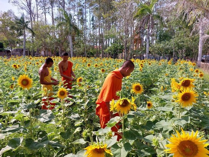Thời gian gần đây, ngôi chùa còn thu hút du khách đổ về check-in nhờ vườn hoa hướng dương rực rỡ. Đại đức Kim Hoàng Hưng cho biết, vườn hoa hướng dương có diện tích khoảng 2.000m2 được nhà chùa gieo hạt trước Tết Nguyên đán Quý Mão 2023 khoảng một tháng. Hoa bắt đầu nở cách đây khoảng 2 tuần. Mỗi ngày có cả ngàn du khách đến chiêm ngưỡng, chụp hình làm kỷ niệm.