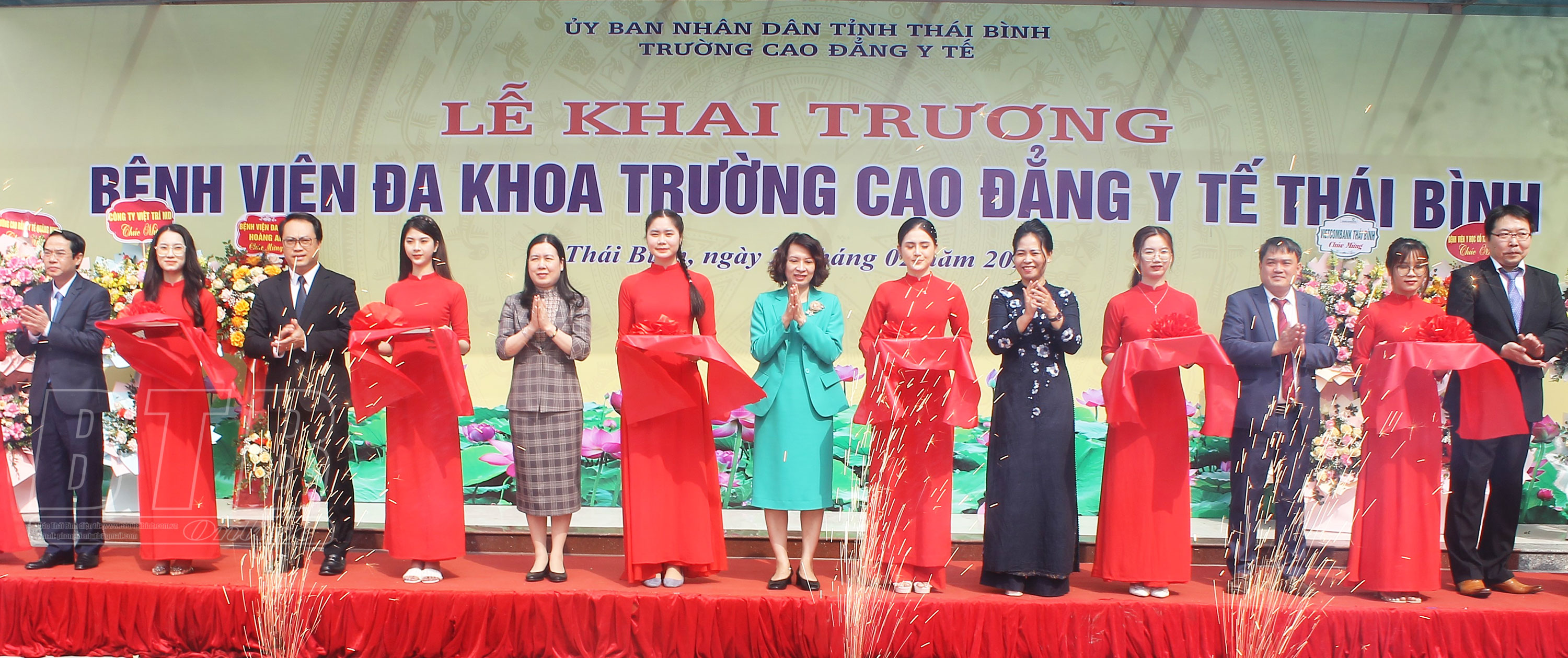 Các đồng chí lãnh đạo và các đại biểu cắt băng khai trương Bệnh viện Đa khoa Trường Cao đẳng Y tế Thái Bình.
