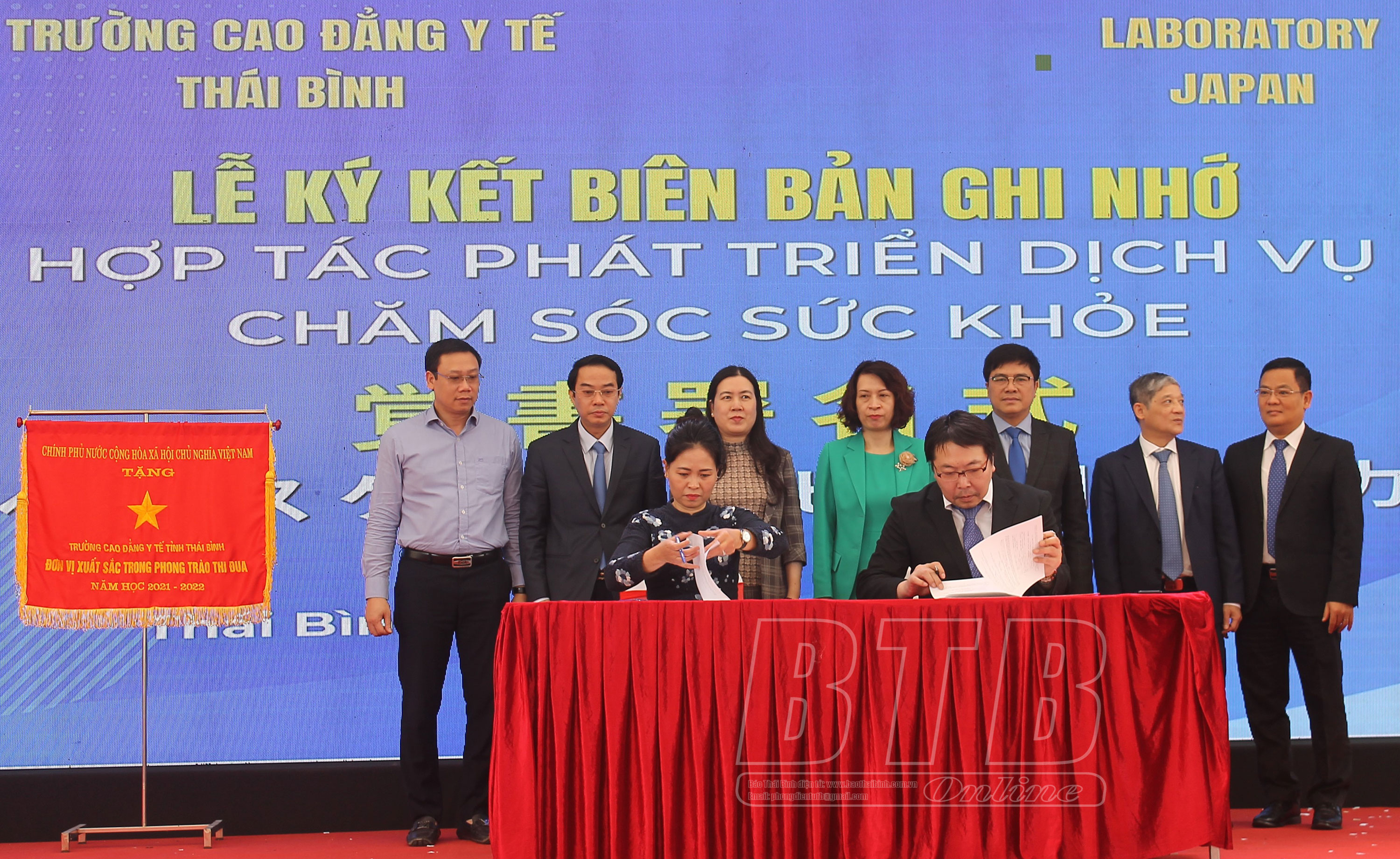 Tại buổi lễ, đồng chí Trần Thị Bích Hằng, Tỉnh ủy viên, Phó Chủ tịch UBND tỉnh đã trao cờ thi đua của Chính phủ cho Trường Cao đẳng Y tế Thái Bình về thành tích hoàn thành xuất sắc, toàn diện nhiệm vụ công tác, dẫn đầu phong trào thi đua năm học 2021 - 2022 của tỉnh Thái Bình. Lãnh đạo nhà trường đã ký biên bản thỏa thuận hợp tác với một số đơn vị, tổ chức trong nước, quốc tế.