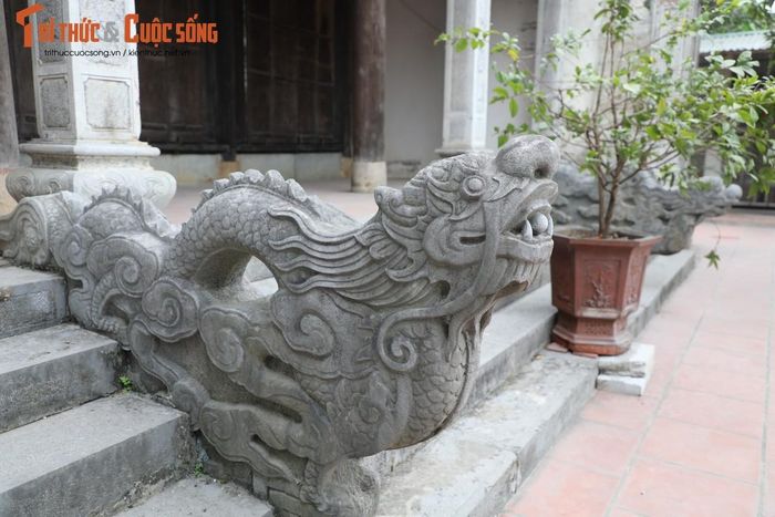 Phía mặt sau cổng tam quan là đôi rồng đá và đôi hổ đá được bố trí dọc theo hai bên bậc lên xuống, theo thế đối xứng, chầu vào nhà Bái đường. Những thiết kế tại chùa được nghệ nhân xưa đều đắp nổi hình tứ linh: long, ly, quy, phượng theo thế đối xứng, cầu kỳ, uyển chuyển.