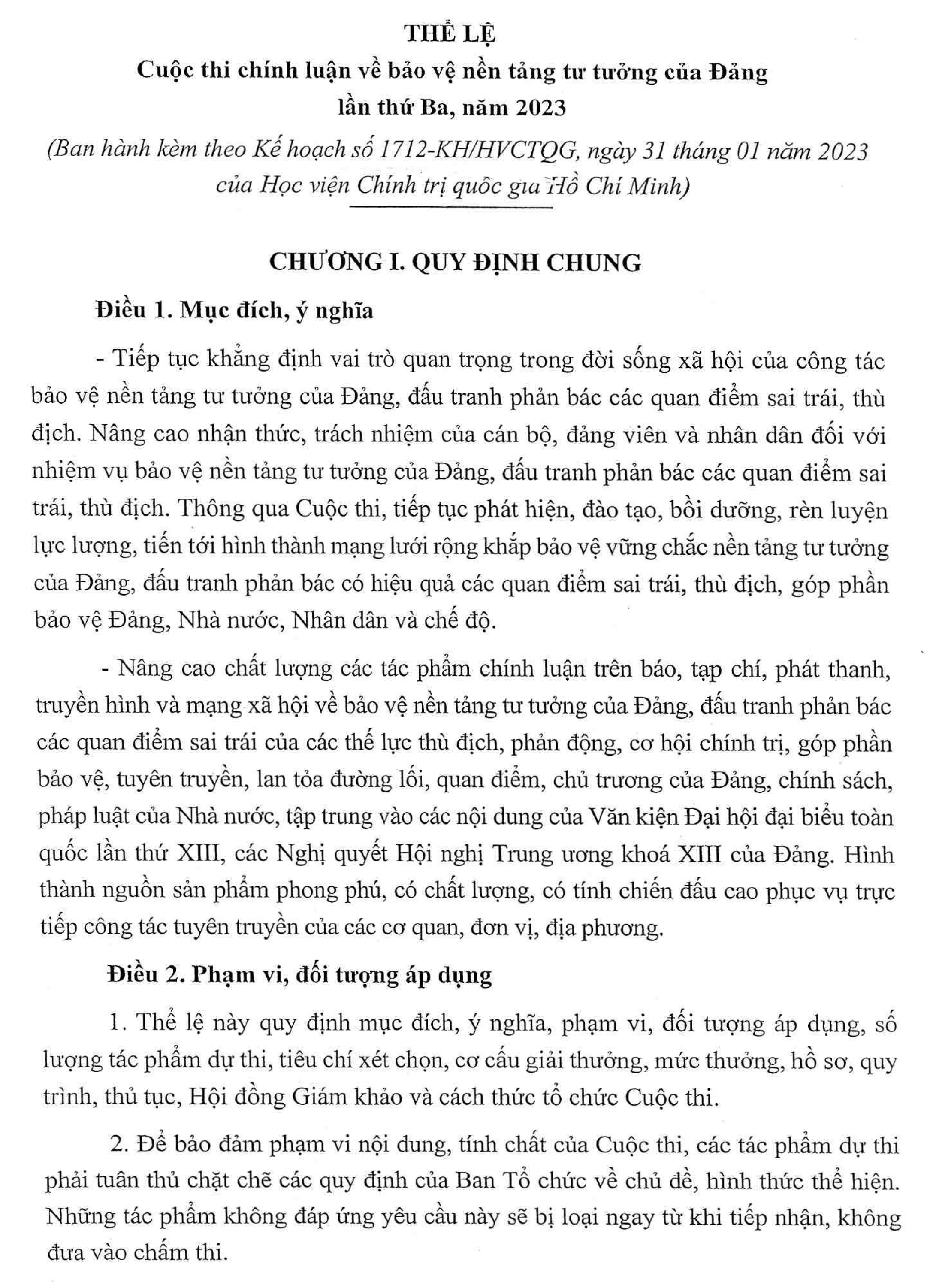 Thể lệ Cuộc thi chính luận về bảo vệ nền tảng tư tưởng của Đảng lần thứ Ba, năm 2023