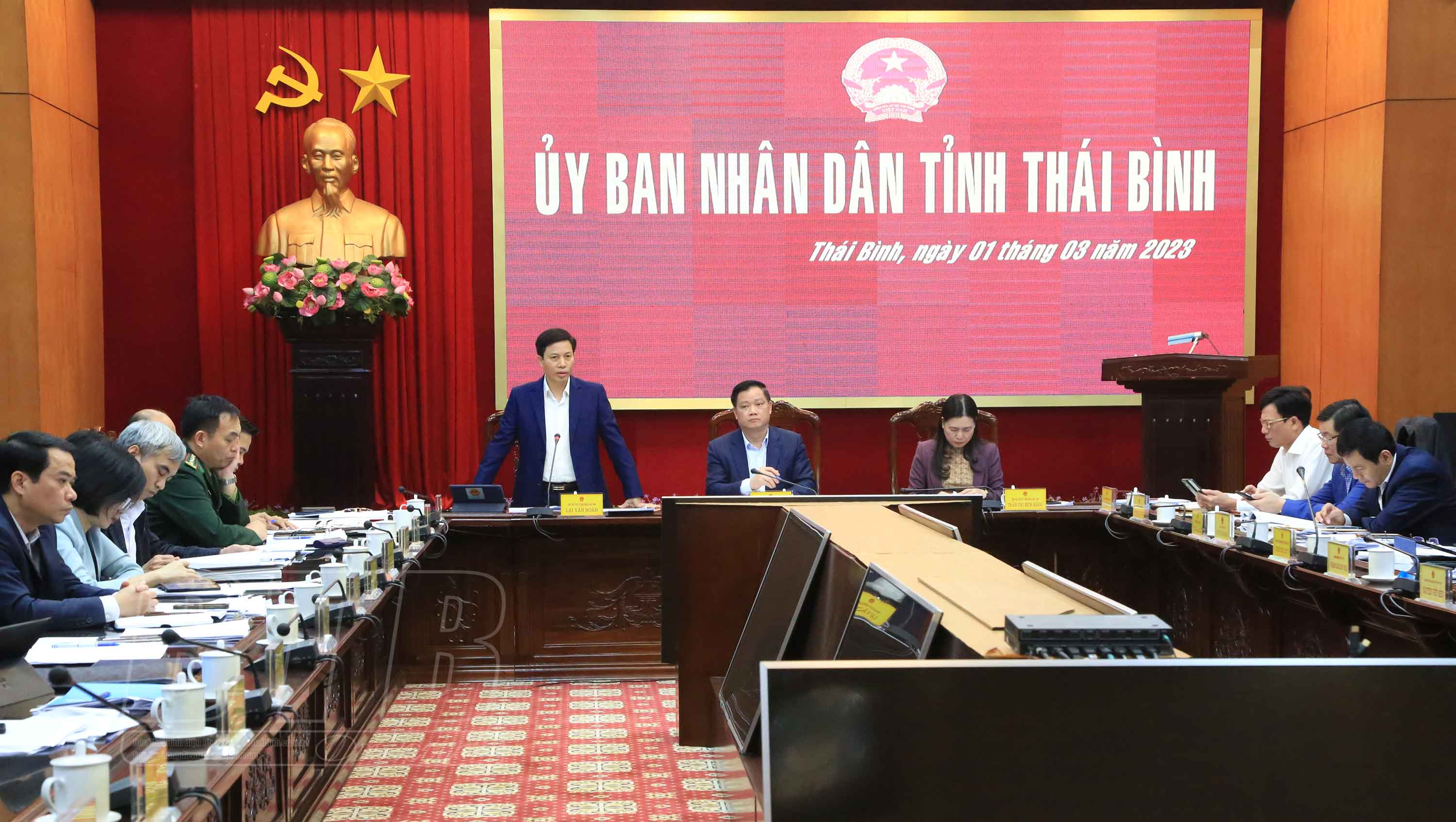 Tại hội nghị, đồng chí Phó bí thư Tỉnh ủy, Chủ tịch UBND tỉnh cũng cho ý kiến cụ thể về báo cáo điều chỉnh quy hoạch bảo vệ và phát triển rừng tỉnh Thái Bình giai đoạn 2012 - 2020; Tờ trình về việc ban hành Nghị quyết quy định mức chi tổ chức thực hiện bồi thường, hỗ trợ, tái định cư và cưỡng chế kiểm đếm, cưỡng chế thu hồi đất khi Nhà nước thu hồi đất trên địa bàn tỉnh Thái Bình; Tờ trình về việc ban hành Nghị quyết bãi bỏ Nghị quyết số 02/2022/NQ-HĐND ngày 29/4/2022 của HĐND tỉnh sửa đổi, bổ sung mục 1.1 Phụ lục 2 và khoản 1 mục II Phụ lục 3 ban hành kèm theo Nghị quyết số 50/2016/NQ-HĐND ngày 13/12 của HĐND tỉnh ban hành quy định mức thu, chế độ thu, nộp, quản lý và sử dụng phí, lệ phí theo Luật Phí và lệ phí năm 2015 thuộc thẩm quyền của HĐND tỉnh trên địa bàn tỉnh Thái Bình; Tờ trình về việc ban hành sửa đổi Nghị quyết số 17/2022/NQ-HĐND ngày 9/12/2022 của HĐND tỉnh quy định mức học phí và chính sách hỗ trợ học phí đối với các cơ sở giáo dục mầm non, giáo dục phổ thông trên địa bàn tỉnh năm học 2023 - 2024; Tờ trình về việc ban hành Nghị quyết quy định chính sách hỗ trợ thuê bao vệ tinh duy trì hoạt động thiết bị giám sát hành trình cho chủ tàu cá trên địa bàn tỉnh Thái Bình giai đoạn 2023 - 2025. Đồng thời, giao nhiệm vụ cho các sở, ngành, địa phương trong thực hiện cũng như tham mưu cho UBND tỉnh đề ra các giải pháp, thực hiện hiệu quả các nội dung, kế hoạch đã đề ra.