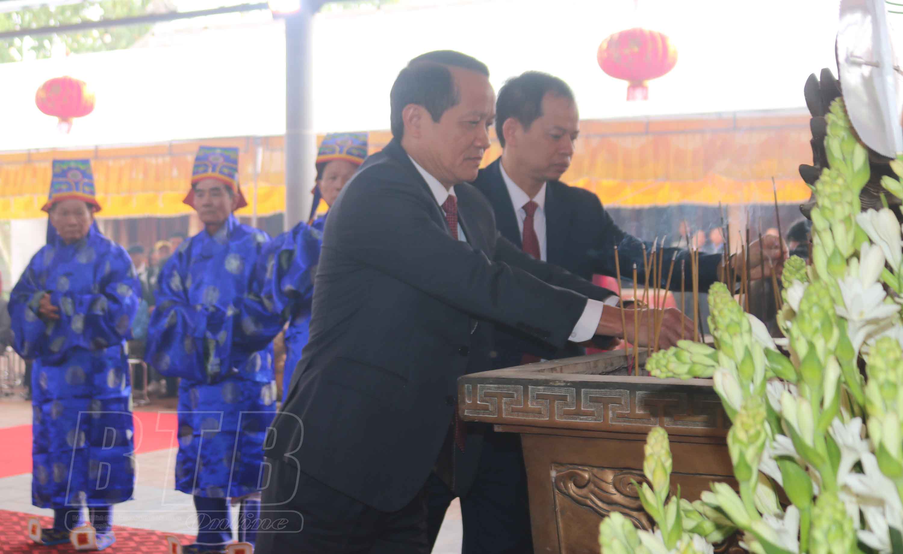 Sau nghi thức dâng hương tưởng niệm Quốc Công Tiết Chế Hưng Đạo Đại Vương Trần Quốc Tuấn tại tòa đại bái, các đại biểu đã tham dự khai mạc lễ hội truyền thống.