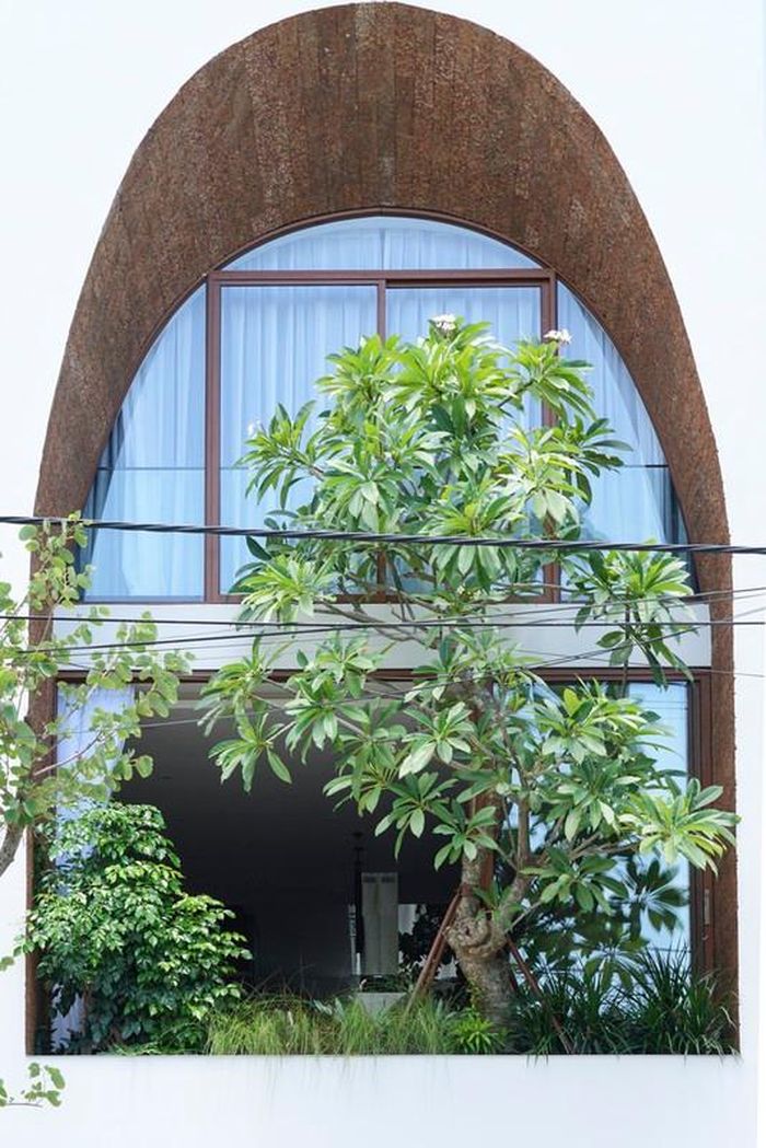 Để giải quyết vấn đề thiếu sáng và thông gió đặc trưng của nhà phố, kiến trúc sư chia ngôi nhà thành ba phần: Trước, sau và hy sinh một khoảng không gian lớn ở giữa để có thể lấy ánh sáng và gió vào nhà.
