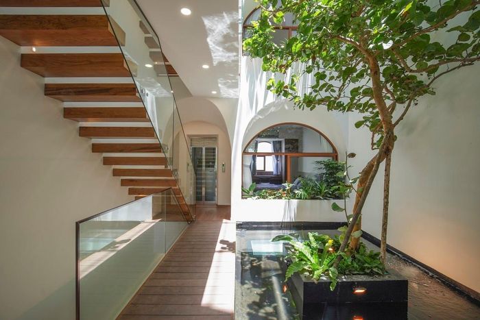 Xung quanh giếng trời có rất nhiều cây xanh.