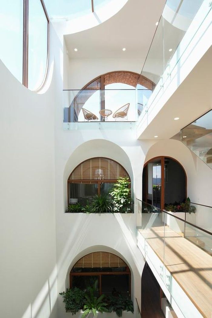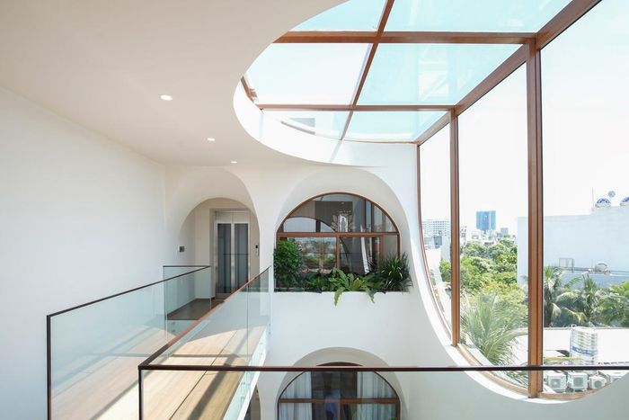 Ở giữa là giếng trời lớn xuyên suốt từ tầng 4 đến tầng trệt.