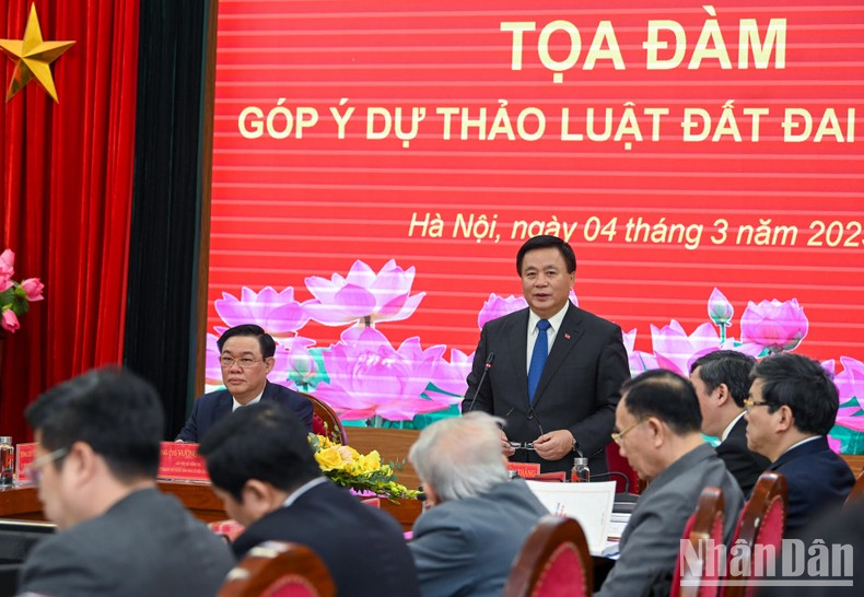 Chủ tịch Quốc hội Vương Đình Huệ dự tọa đàm góp ý dự thảo Luật Đất đai (sửa đổi). (Ảnh: Duy Linh).