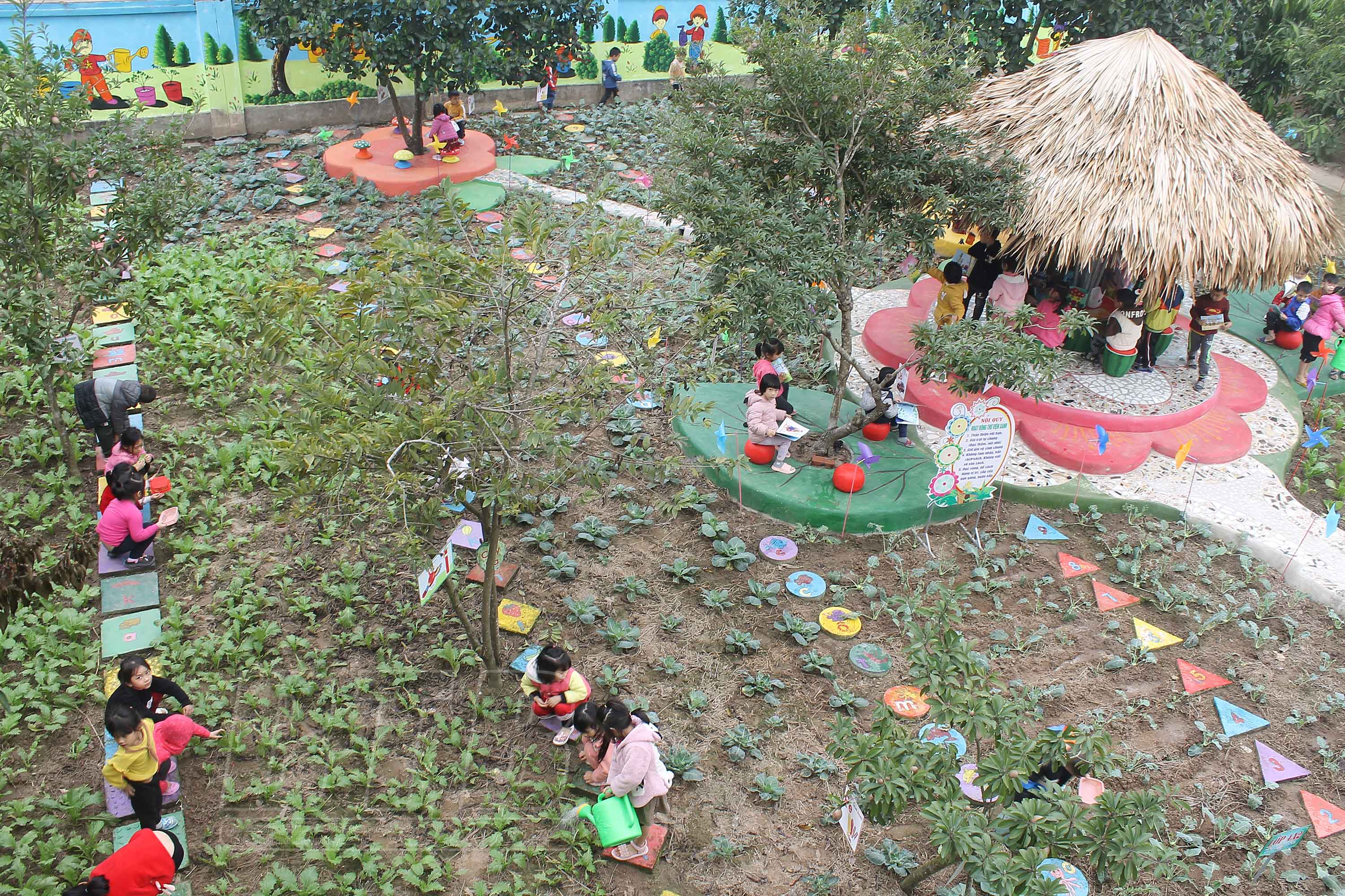 Để có nguồn thực phẩm an toàn cho mỗi bữa ăn của trẻ và phục vụ các hoạt động giáo dục trải nghiệm, thời gian gần đây, các trường mầm non trên địa bàn huyện Vũ Thư tích cực đầu tư xây dựng vườn rau cho bé trong khuôn viên mỗi trường.