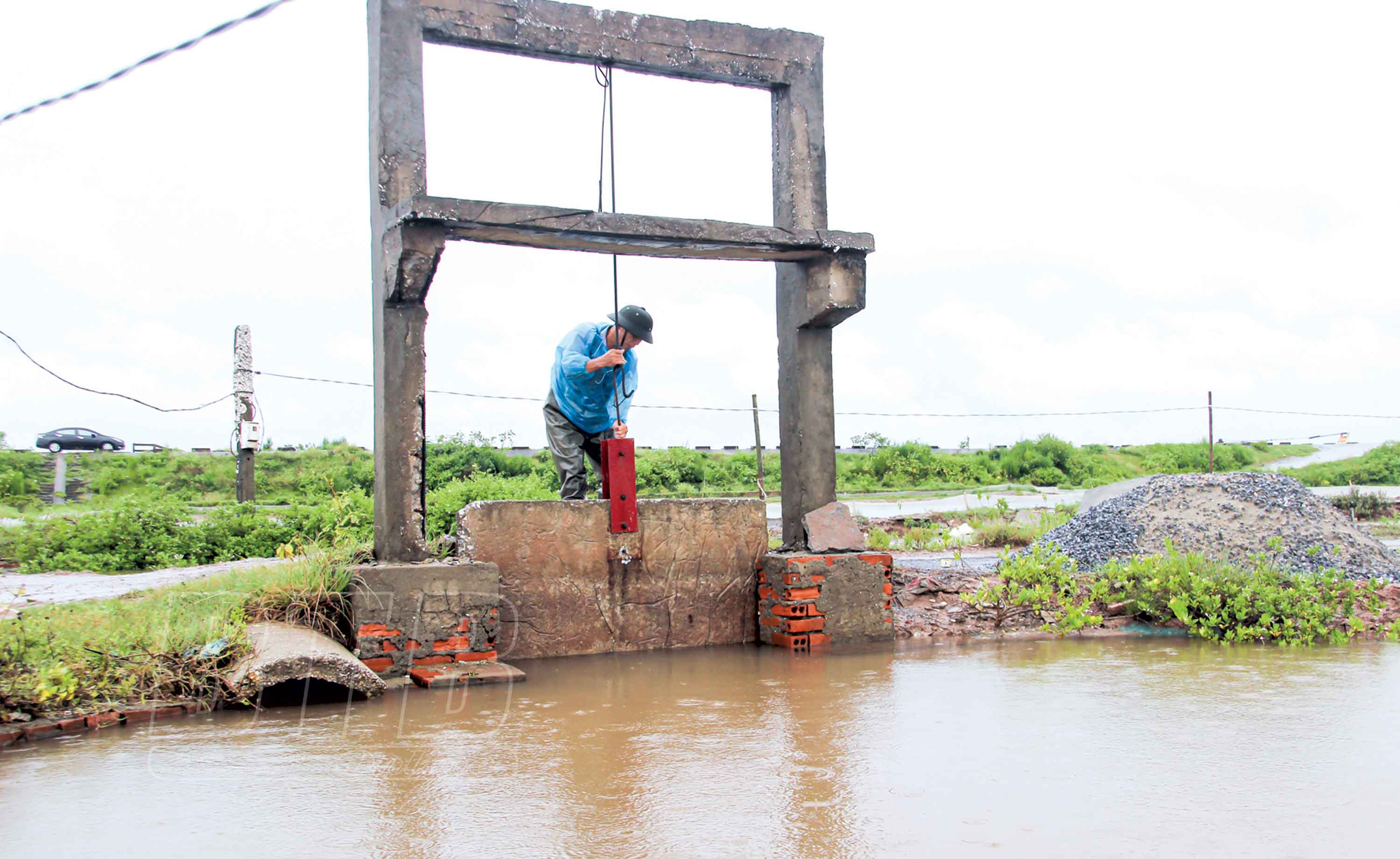 Các cống đầu khâu tại vùng nuôi trồng thủy sản xã Nam Cường được gia cố bảo đảm lấy nước phục vụ nuôi trồng thủy sản.