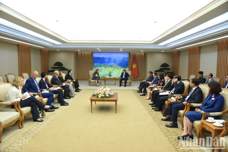 Thủ tướng nhấn mạnh, quan hệ kinh tế, thương mại, đầu tư là một trụ cột quan trọng trong quan hệ hai nước; hoan nghênh USAID tiếp tục tăng ngân sách hỗ trợ phát triển cho Việt Nam, đề nghị USAID tiếp tục đẩy mạnh hỗ trợ Việt Nam khắc phục hậu quả chiến tranh, đặc biệt là tẩy độc da cam/dioxin, rà phá bom mìn; đẩy mạnh hợp tác trong ứng phó biến đổi khí hậu, y tế, giáo dục, phát triển nguồn nhân lực chất lượng cao, hỗ trợ Đại học Fulbright Việt Nam trở thành trung tâm đào tạo tầm cỡ khu vực; thúc đẩy chuyển đổi xanh, chuyển đổi số.