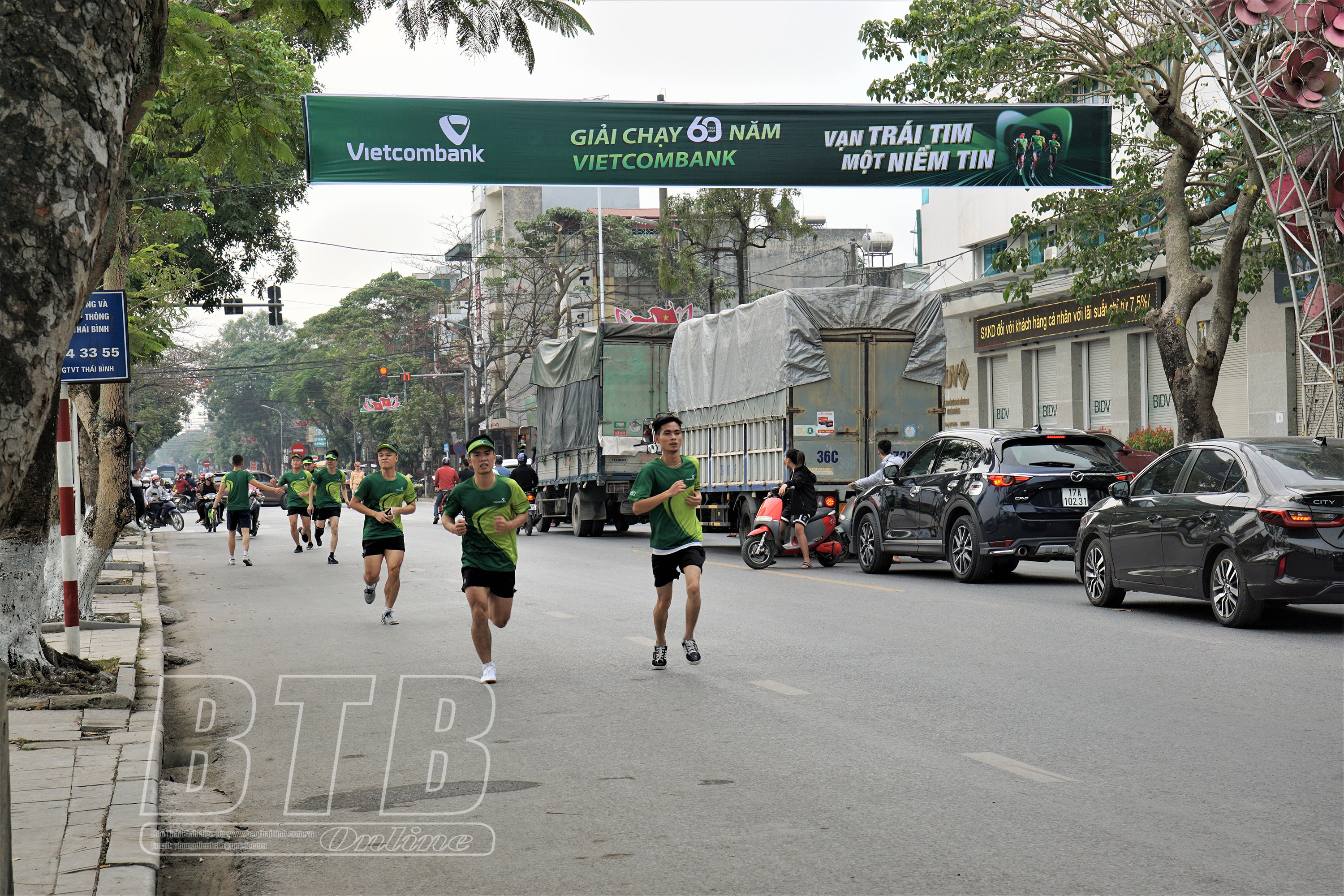 Tham gia giải chạy, 300 vận động viên (VĐV) là các cán bộ nhân viên, khách hàng, đối tác của Vietcombank tham gia chạy cự ly 6km, xuất phát từ Quảng trường 14/10, theo các tuyến đường Lê Lợi, Lý Bôn, Hai Bà Trưng (Thành phố Thái Bình). Với thông điệp xuyên suốt “Vạn trái tim - Một niềm tin”, giải chạy không chỉ mang tính chất thúc đẩy tinh thần rèn luyện thể dục thể thao mà còn có ý nghĩa gắn kết vì cộng đồng. Toàn bộ thành tích của các VĐV được Vietcombank quy đổi thành tiền, cụ thể mỗi km chạy của mỗi VĐV là 60.000 đồng, để xây dựng Quỹ “Vững tương lai” hỗ trợ học bổng cho học sinh, sinh viên nghèo vượt khó, tài năng.