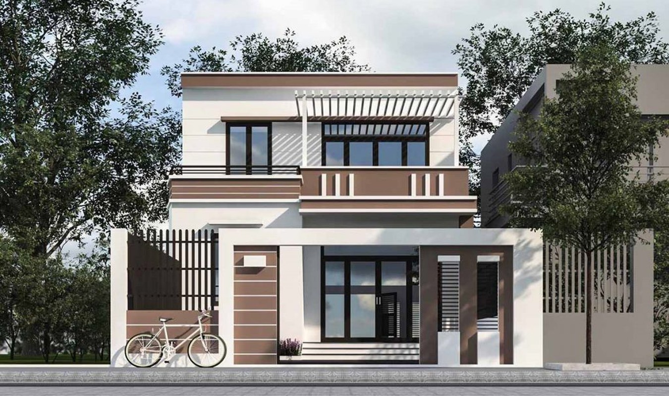 Mẫu nhà 2 tầng có độ cao vừa phải, tầng 2 có phần thu hẹp hơn so với tầng 1 để nhường chỗ cho ban công thoáng và rộng hơn.