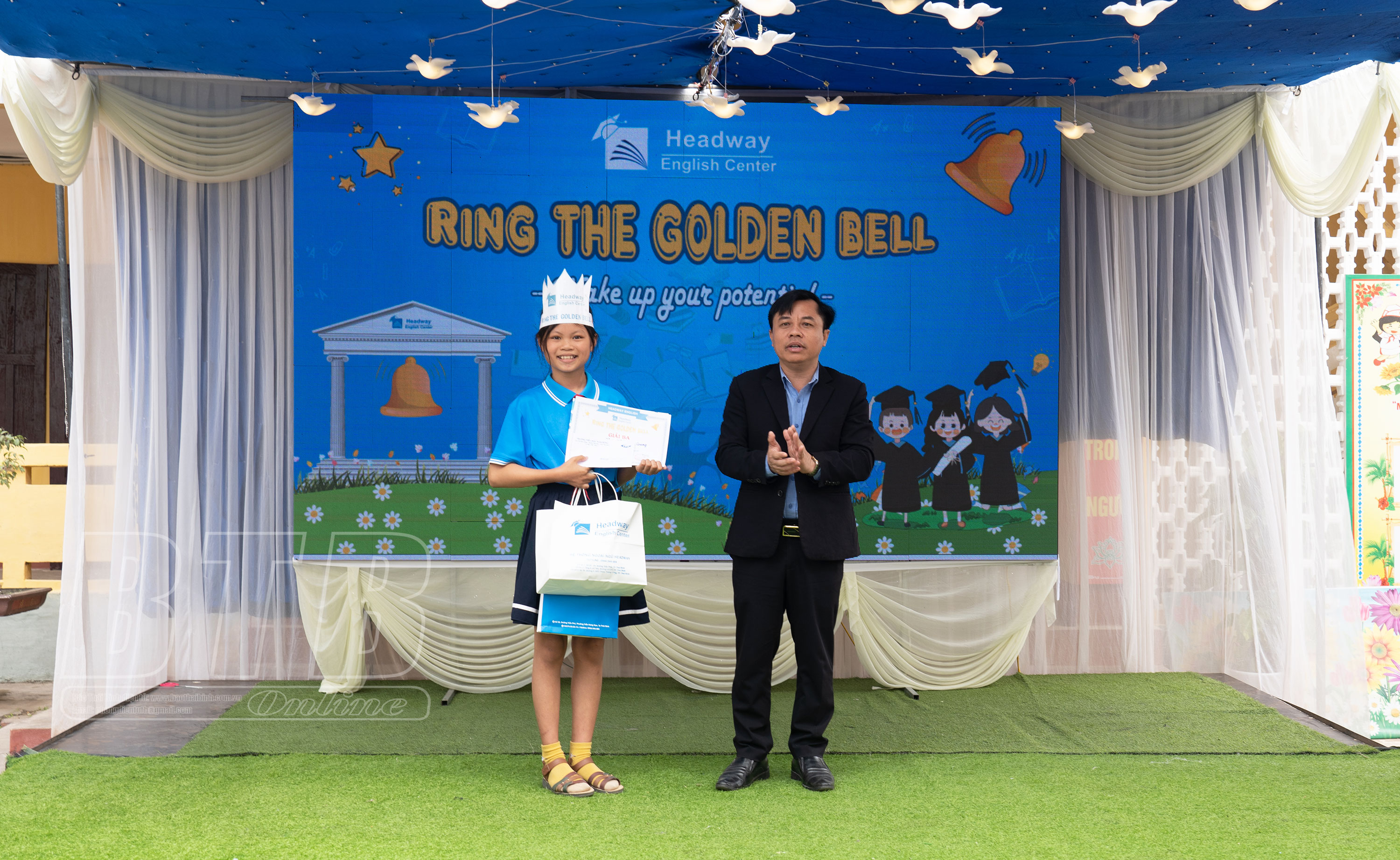 Hội thi gồm 2 phần: rung chuông vàng và giao lưu khán giả. Phần thi rung chuông vàng gồm 3 vòng: khởi động, tăng tốc, về đích. Mỗi vòng có 10 câu hỏi, các em học sinh lần lượt trả lời 30 câu hỏi trắc nghiệm về kiến thức môn Tiếng Anh liên quan đến chương trình đã học tại trường. Phần thi giao lưu khán giả cũng thu hút đông đảo học sinh tham gia. Cuộc thi rung chuông vàng môn Tiếng Anh là một sân chơi trí tuệ, bổ ích và lý thú trên tinh thần “học mà chơi - chơi mà học”, giúp các em học sinh vừa có cơ hội giao lưu, cọ xát và thực hành vốn Tiếng Anh của mình vừa được rèn luyện tính năng động, sáng tạo, mạnh dạn, tự tin.
