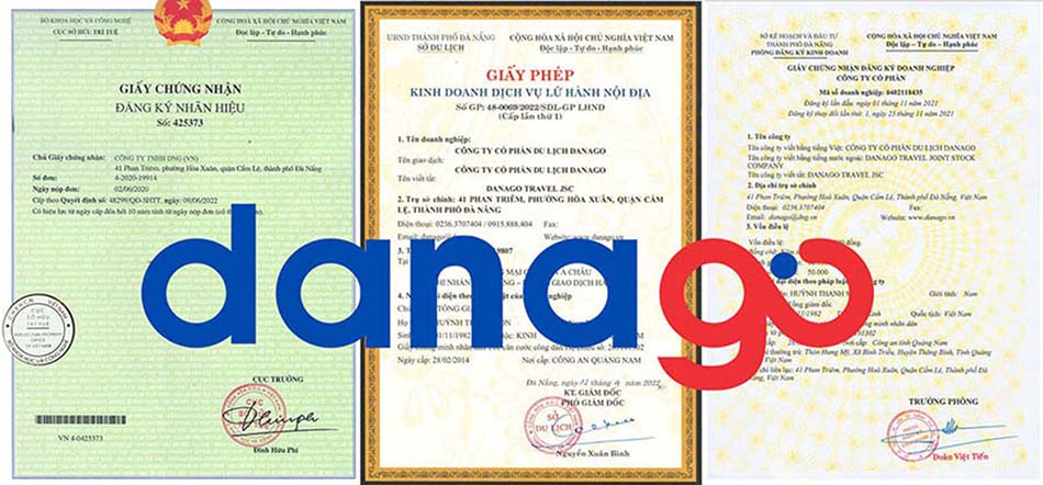 Khi tiếp cận với bộ phận pháp chế của đơn vị này, chúng tôi được biết, DANAGO có hồ sơ pháp lý khá đầy đủ từ giấy phép đăng kí kinh doanh (Số 0402118435), đến giấy phép lữ hành (Số 48-N69/2022/SDL.GP-LHND); ngoài ra còn có Giấy phép đăng kí nhãn hiệu độc quyền mang thương hiệu “DANAGO” với số 425373 được cấp bởi Cục SHTT.