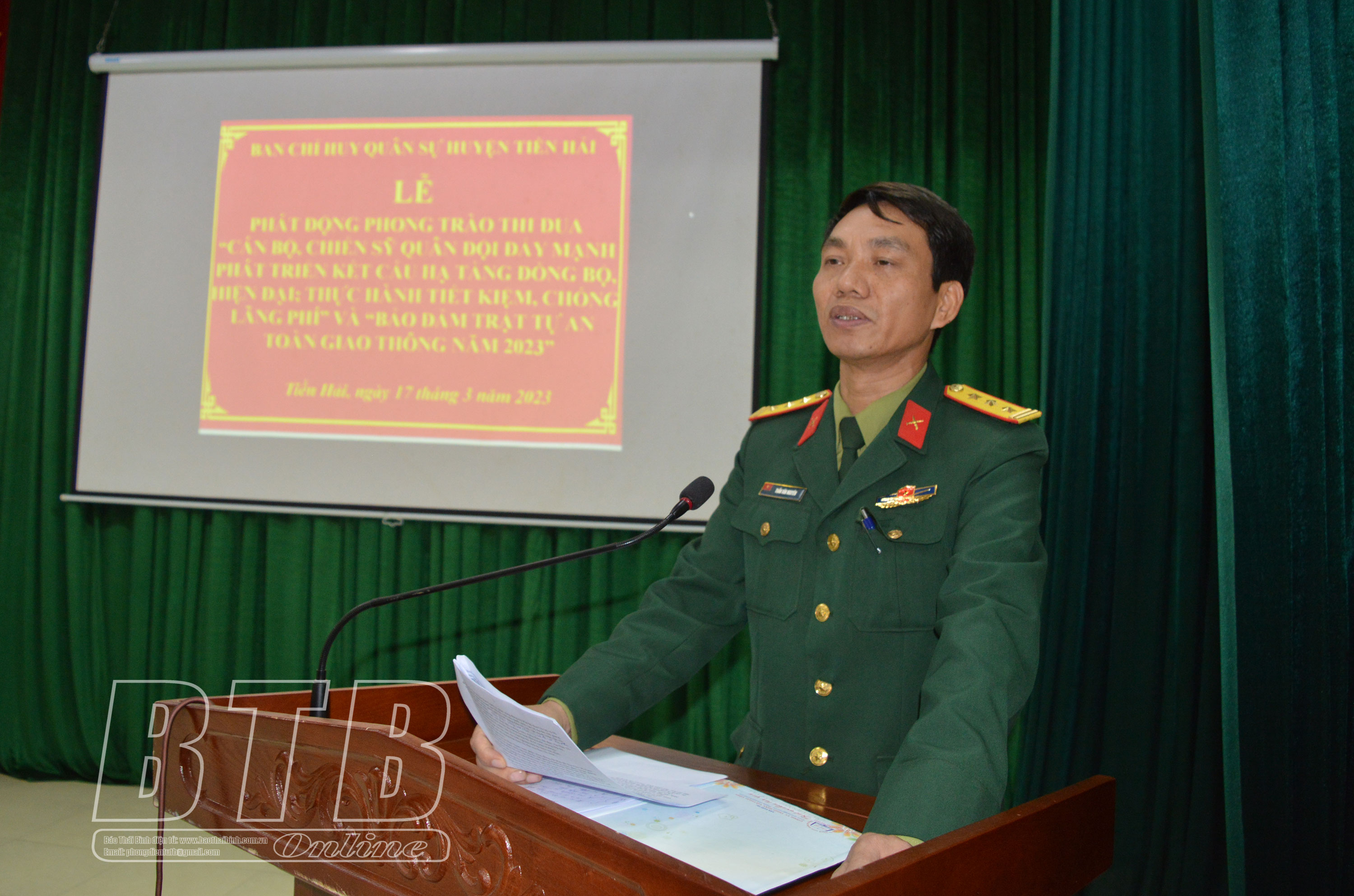 Đại diện Ban Chỉ huy Quân sự huyện Tiền Hải triển khai phát động các phong trào thi đua.
