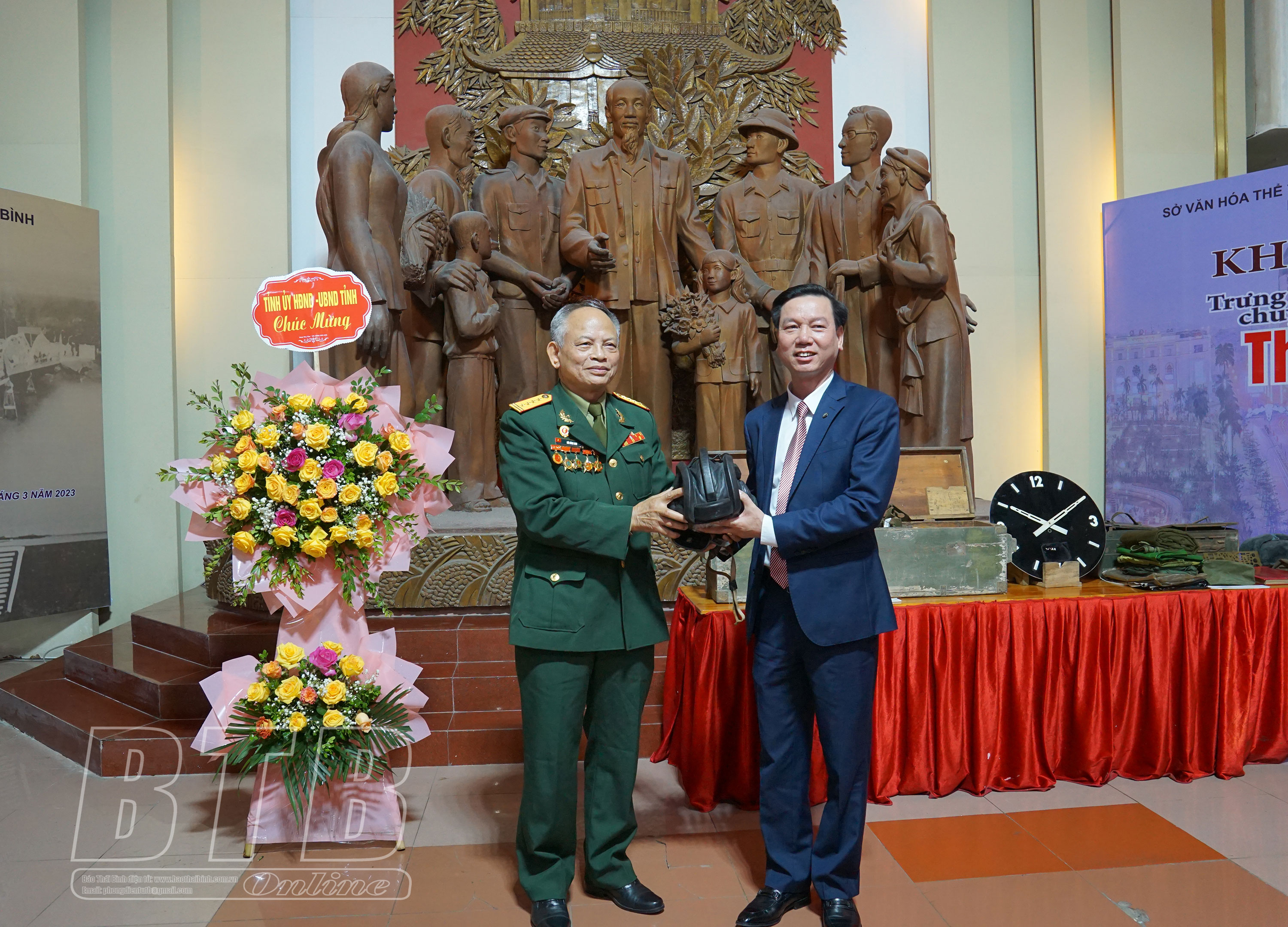 Tại lễ khai mạc trưng bày chuyên đề đã diễn ra lễ trao tặng Bảo tàng tỉnh 80 tài liệu, hiện vật, hình ảnh của Đại tá Bùi Đình Nho, nguyên Đảng uỷ viên Lữ đoàn xe tăng 201, Binh chủng Tăng thiết giáp, nguyên Chủ tịch Hội Cựu chiến binh tỉnh Thái Bình, nhiệm kỳ 2007 - 2012.