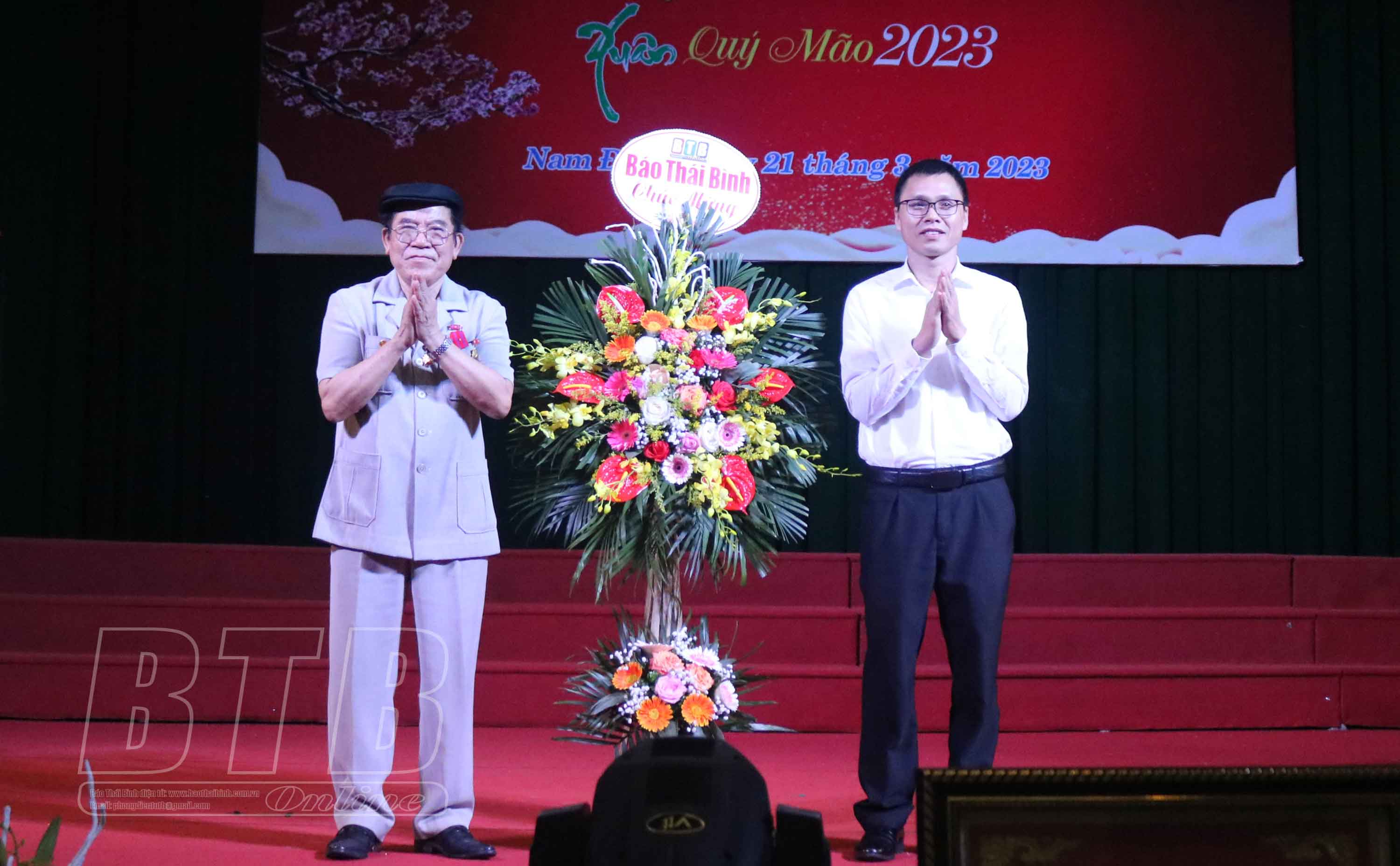 Đại diện lãnh đạo Báo Thái Bình tặng hoa chúc mừng.