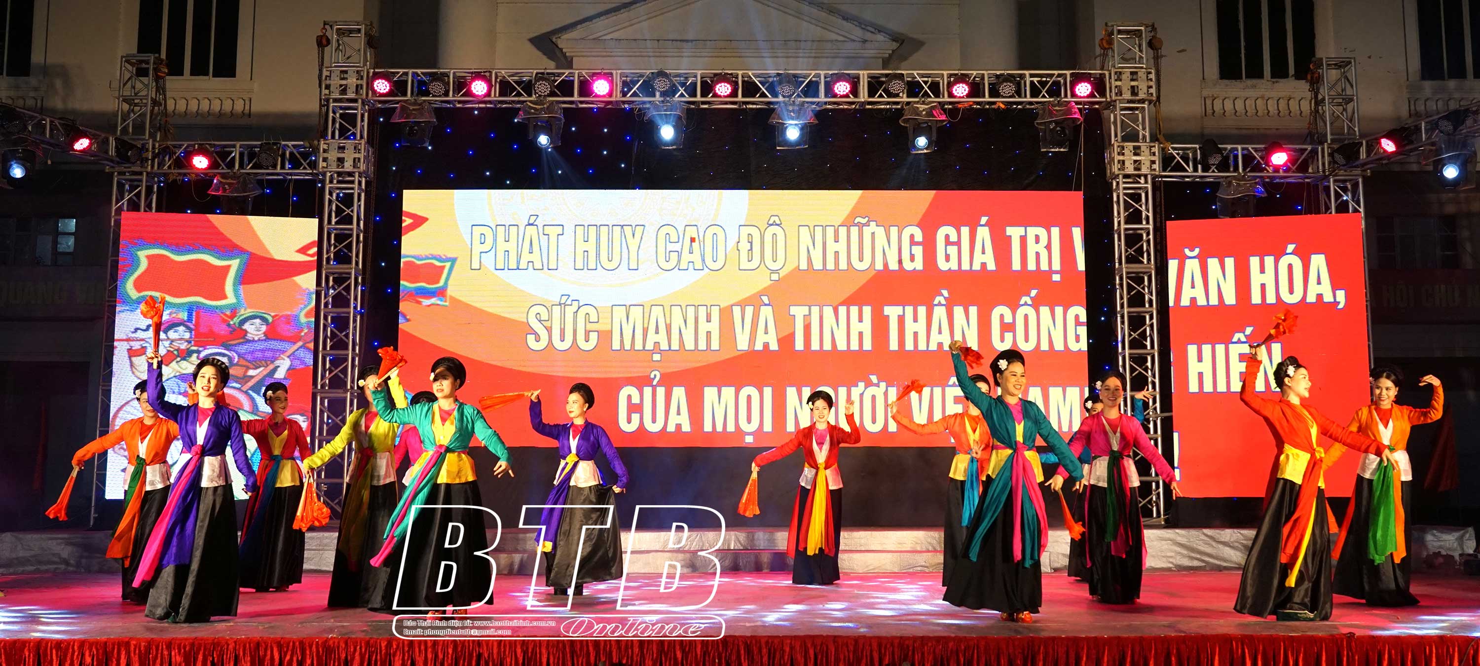 Tối ngày 21/3, tại Quảng trường 14/10 đã diễn ra chương trình nghệ thuật đặc biệt chào mừng ngày hội Văn hóa, Thể thao và Du lịch tỉnh Thái Bình gắn với kỷ niệm 133 năm ngày thành lập tỉnh Thái Bình (21/3/1890 - 21/3/2023) và kỷ niệm 80 năm ra đời “Đề cương về văn hóa Việt Nam” (1943 - 2023).