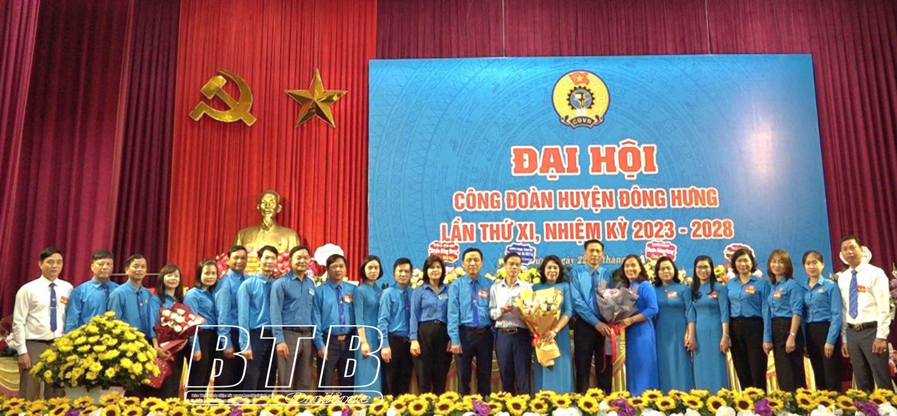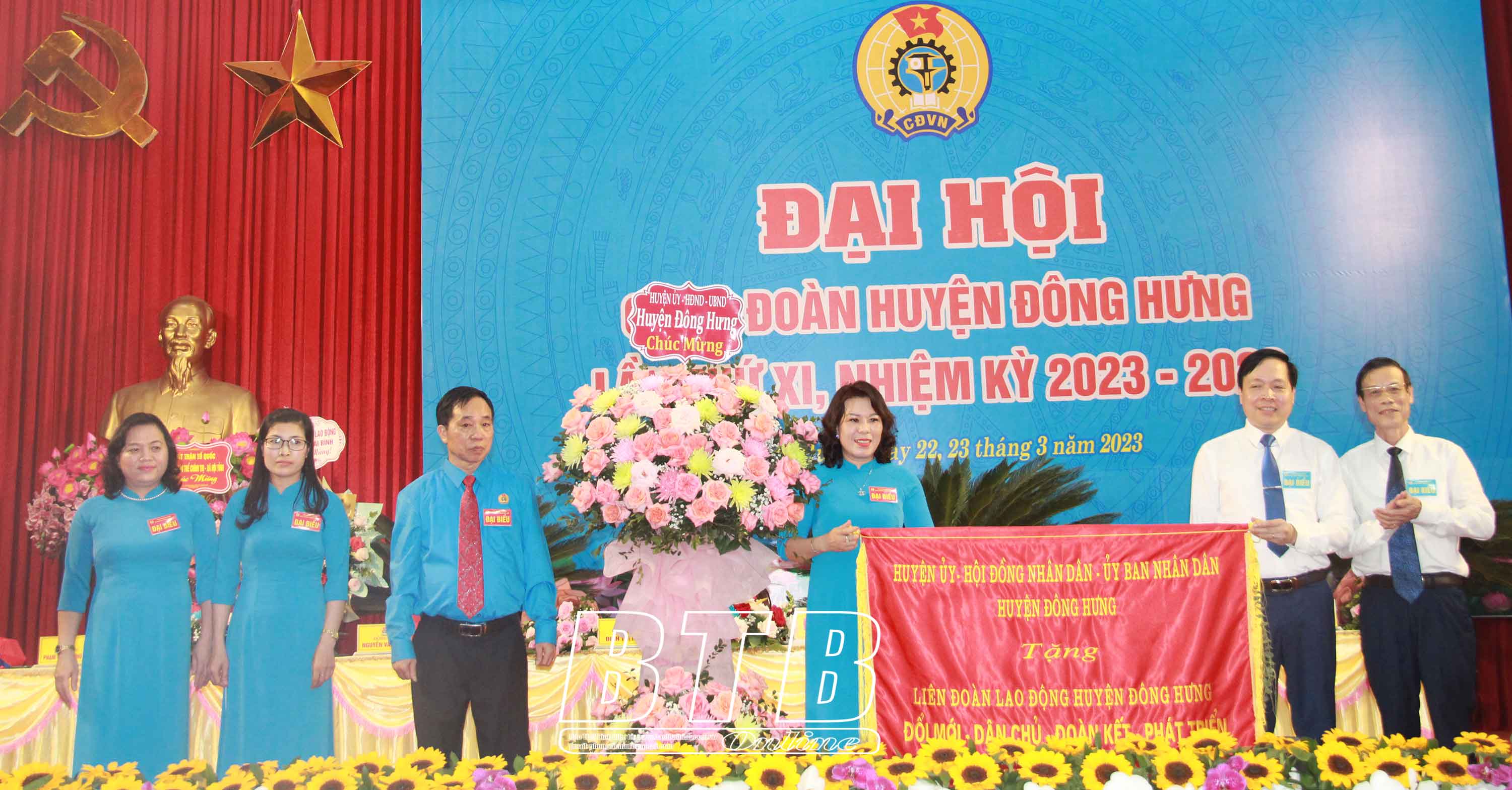 Nhân dịp này, lãnh đạo huyện Đông Hưng đã trao tặng đại hội bức trướng mang dòng chữ “Đổi mới, dân chủ, đoàn kết, phát triển”.