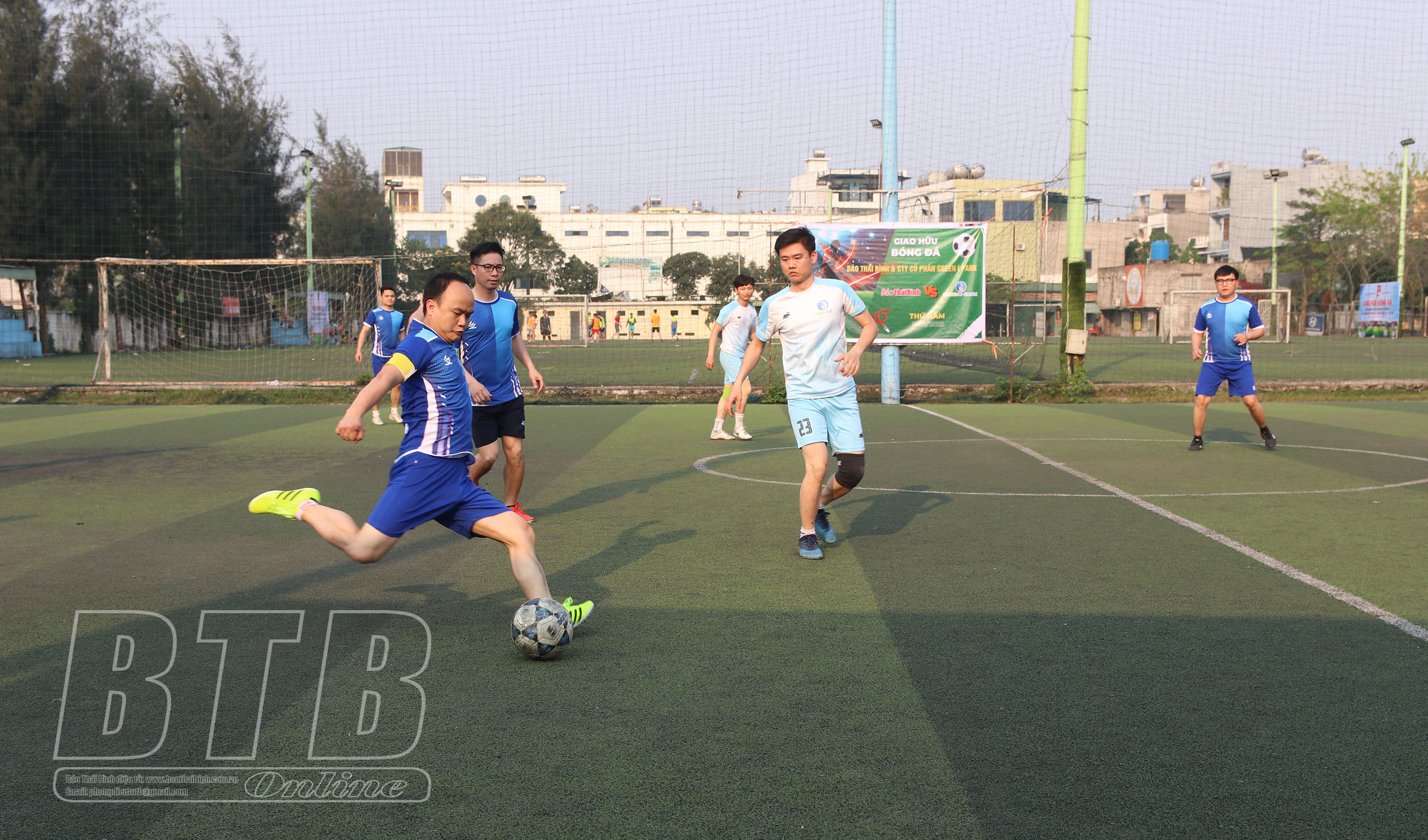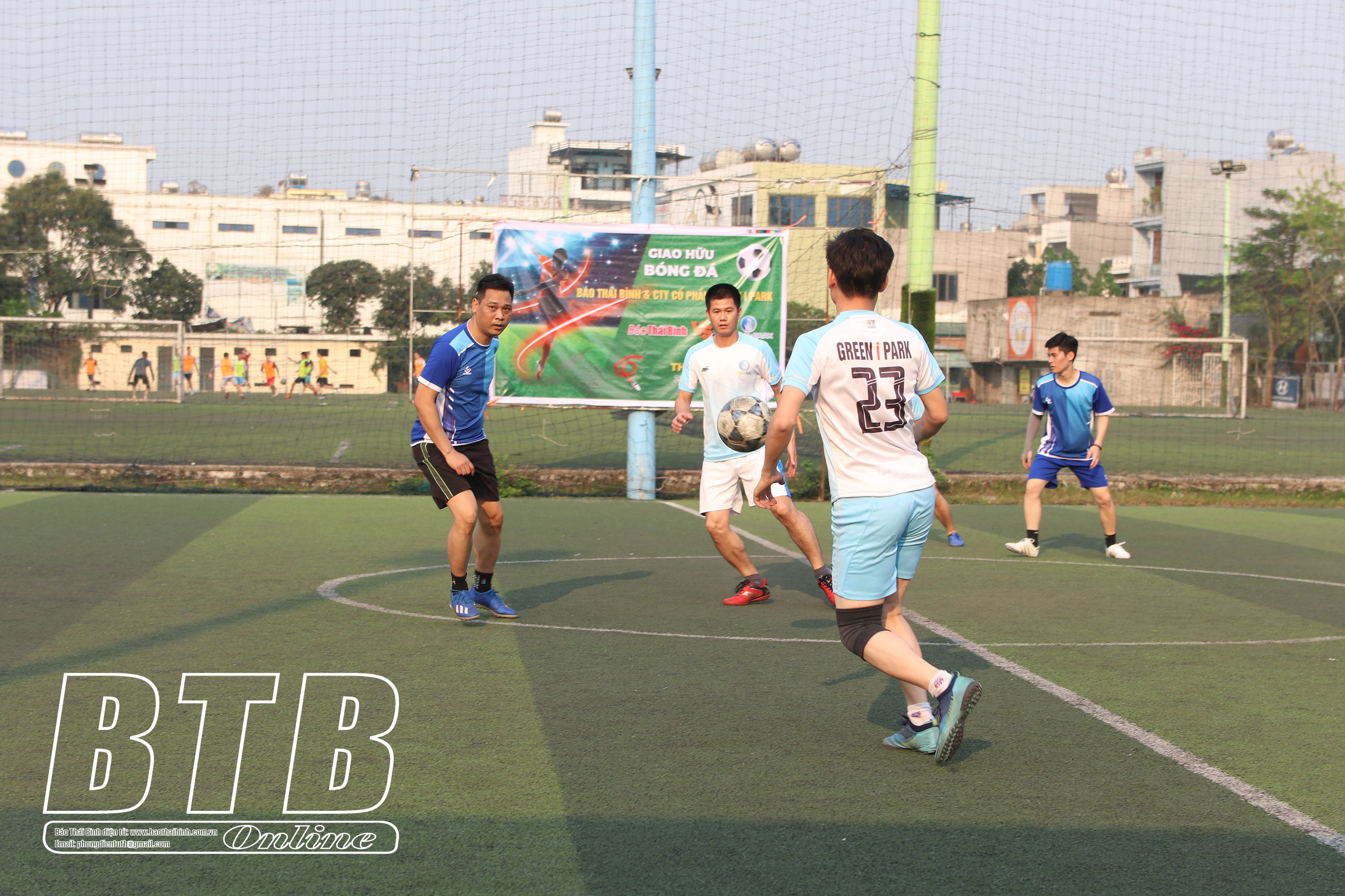 Cũng trong chiều ngày 23/3, Chi đoàn Thanh niên Báo Thái Bình và Chi đoàn Thanh niên Công ty Cổ phần Green I-Park tổ chức giao hữu bóng đá, qua đó tạo sự đoàn kết, gắn bó trong cán bộ, công nhân viên, đoàn thanh niên hai đơn vị, góp phần thực hiện thắng lợi các mục tiêu, kế hoạch năm 2023.