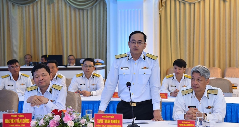 Chuẩn Đô đốc Trần Thanh Nghiêm phát biểu tại buổi làm việc.