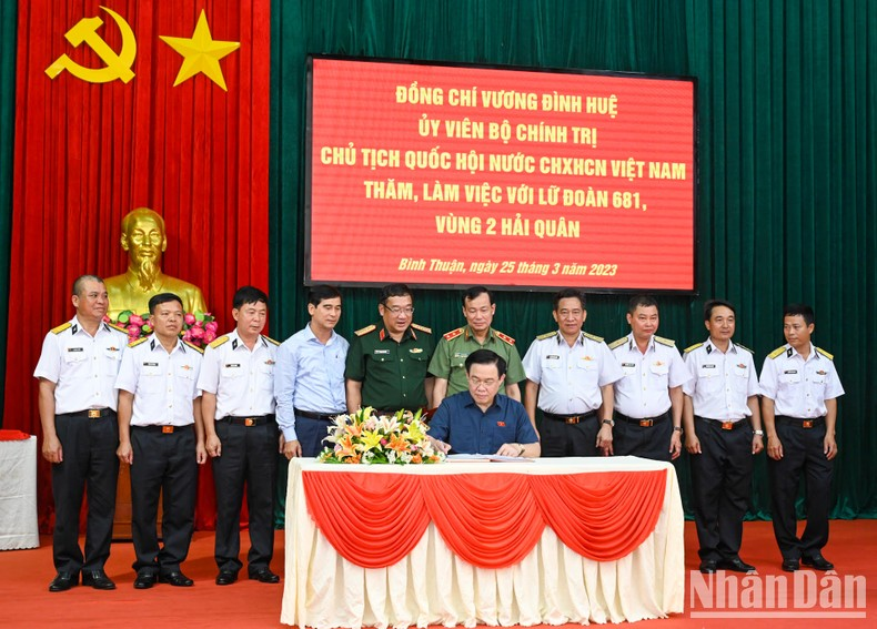 Thay mặt Ủy ban Thường vụ Quốc hội và đoàn công tác, Chủ tịch Quốc hội đặc biệt biểu dương, khen ngợi những thành tích rất quan trọng của cán bộ, chiến sĩ Lữ đoàn 681; đồng thời ghi nhận và đánh giá cao sự lãnh đạo, chỉ đạo của Quân chủng Hải quân; đánh giá rất cao sự quan tâm của cấp ủy Đảng, chính quyền địa phương trong xây dựng và phát triển của Lữ đoàn.