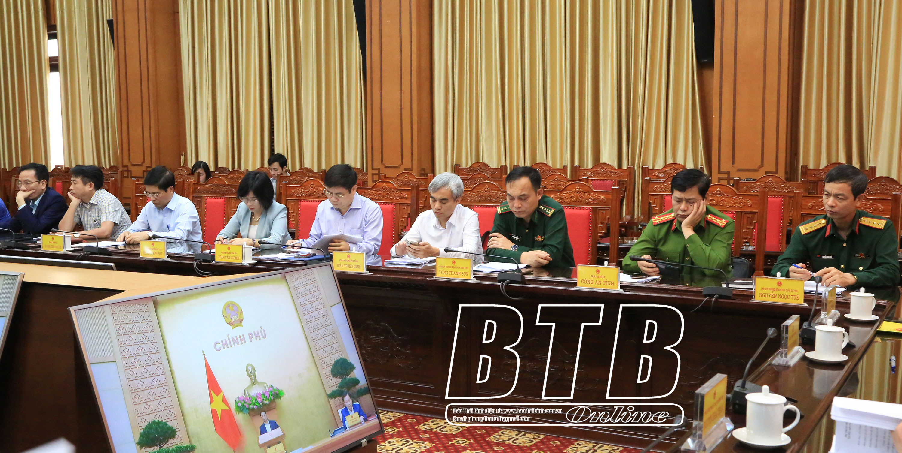 Các đồng chí lãnh đạo tỉnh dự họp tại điểm cầu tỉnh Thái Bình.