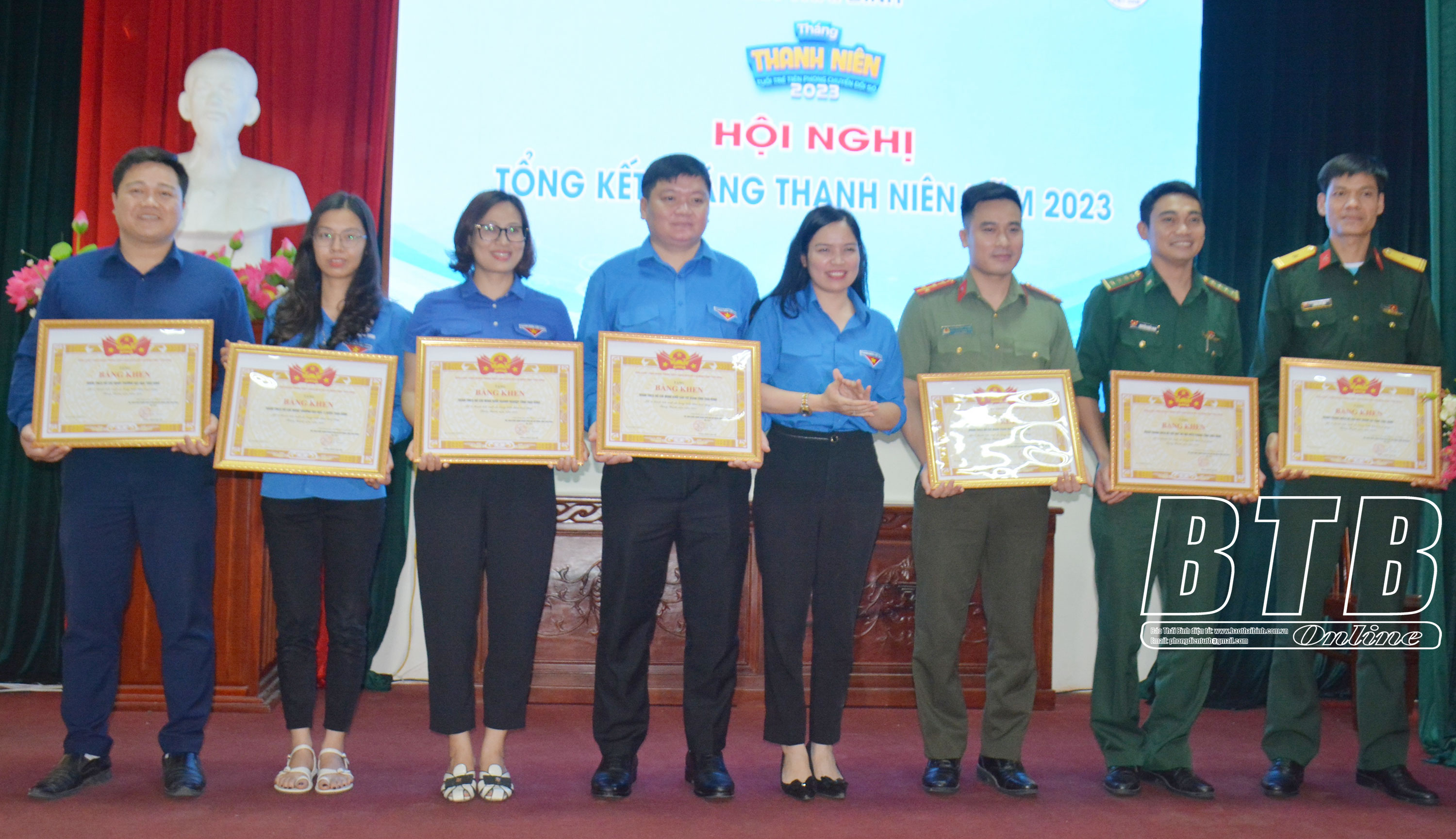 Tại hội nghị, các tập thể có thành tích xuất sắc trong triển khai thực hiện các hoạt động tháng thanh niên năm 2023 được khen thưởng.