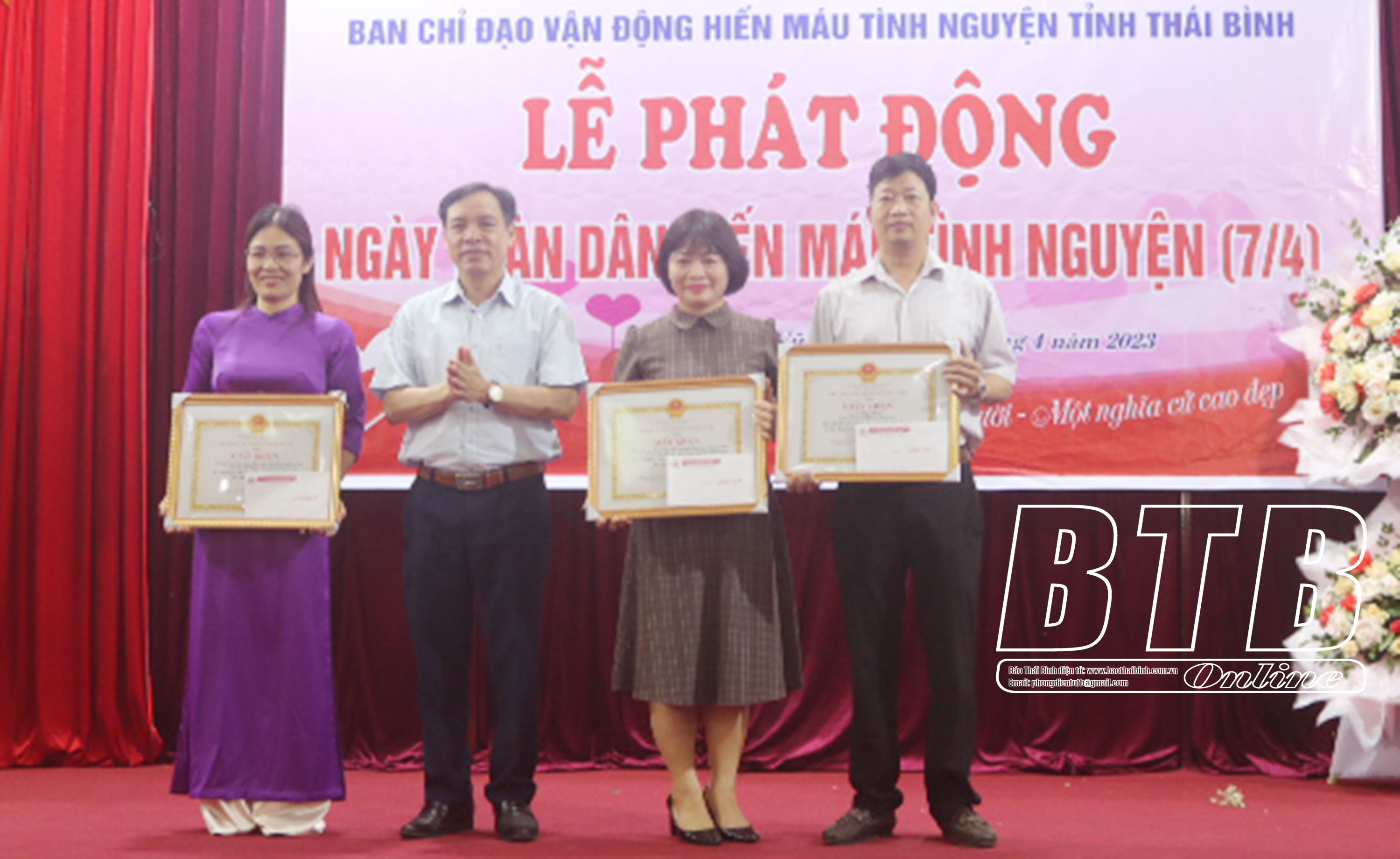 Sáng ngày 7/4, Ban Chỉ đạo vận động hiến máu tình nguyện (HMTN) tỉnh phối hợp với UBND huyện Vũ Thư, Khoa Huyết học và Truyền máu (Bệnh viện Đa khoa tỉnh) tổ chức lễ phát động ngày toàn dân HMTN (7/4). Tới dự có đồng chí Trần Thị Bích Hằng, Tỉnh ủy viên, Phó Chủ tịch UBND tỉnh, Trưởng ban Chỉ đạo vận động HMTN tỉnh; lãnh đạo Huyện ủy, HĐND, UBND huyện Vũ Thư cùng đông đảo cán bộ, giáo viên, đoàn viên, thanh niên và lực lượng vũ trang trong huyện.