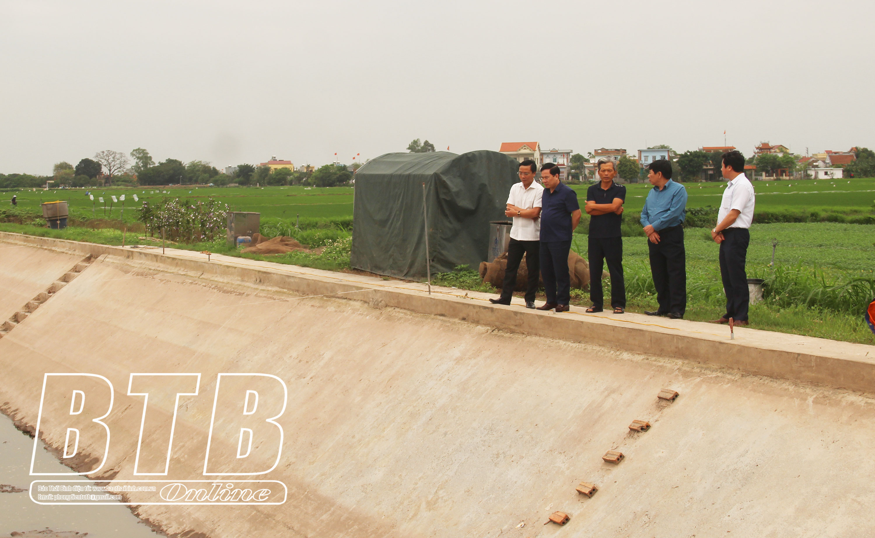 Lãnh đạo Sở Nông nghiệp và Phát triển nông thôn thăm mô hình nuôi thủy sản trong ao bán nổi tại xã Nam Bình (Kiến Xương).