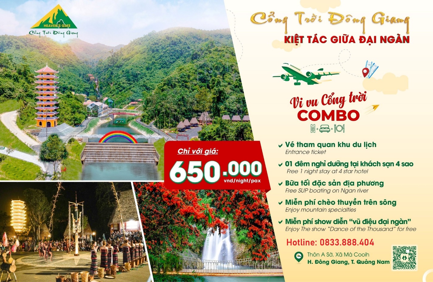 Lưu ý: Giá vé trên chỉ áp dụng cho người lớn, vé cho trẻ em và người cao tuổi sẽ được giảm giá tùy theo quy định của Cổng Trời Đông Giang.