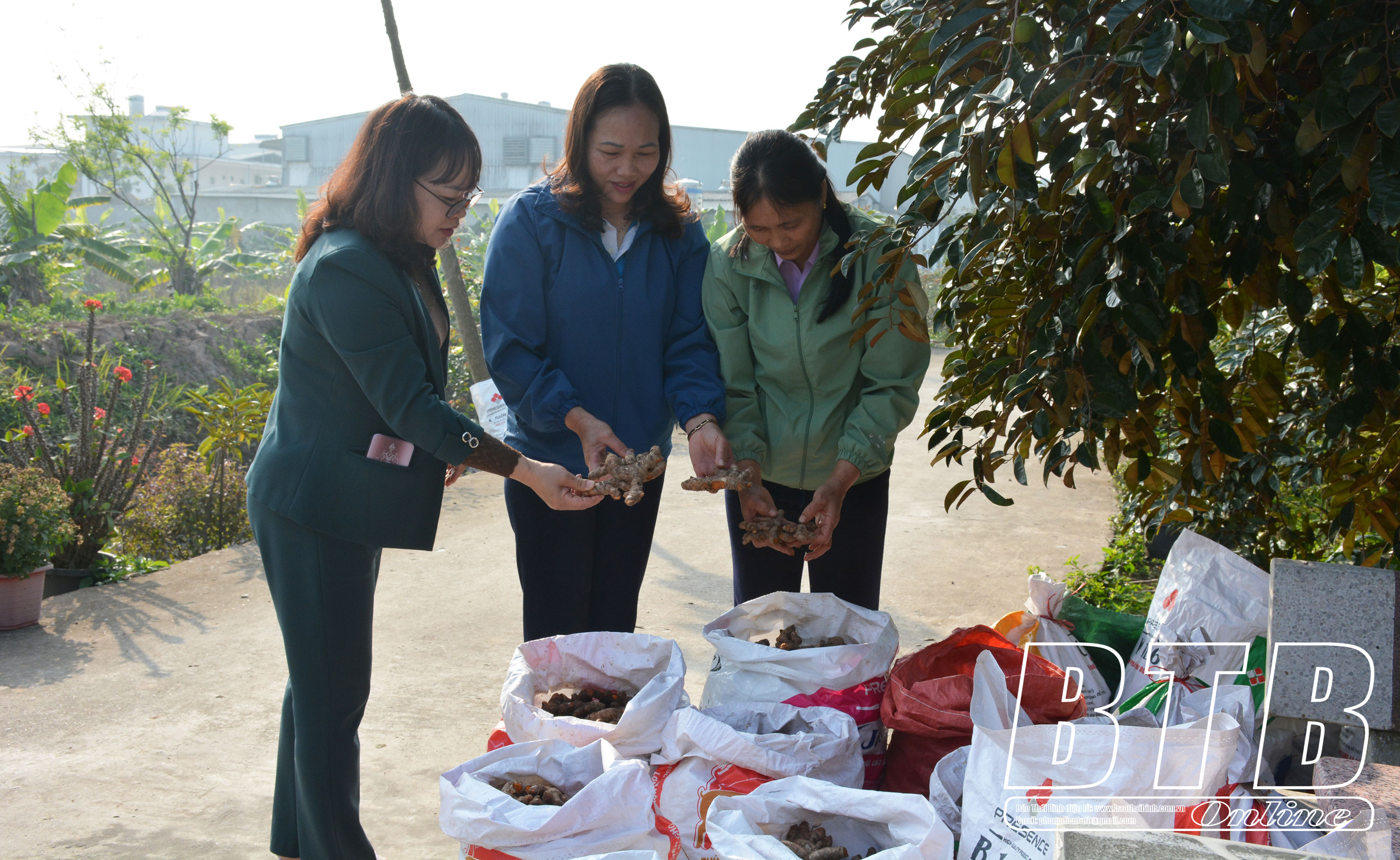 Không giống như các vườn trồng hoa hồng bán cây, bán hoa cắm, chị Tuyết có hơn 1.000 gốc cây hoa hồng cung cấp hoa cho các cơ sở làm nguyên liệu chiết xuất nước hoa hồng, hoa hồng sấy khô. Vừa cắt hoa chị Tuyết vừa kể lại quá trình làm gia trại ven sông Diêm của vợ chồng mình: Trước đây gia đình tôi cũng không khá giả, chồng đi làm xa, mình tôi ở nhà canh tác trên 1.000m2 đất. Khi xã có kế hoạch cho thuê khu đất ngoài bờ đê sông Diêm, vợ chồng tôi mạnh dạn thuê hơn 2.000m2. Ban đầu tôi cải tạo trồng chanh leo nhưng chanh chết dần. Tôi lại cải tạo trồng nghệ, cây hương bài, hoa hồng, hoa cúc cùng một số cây ăn quả. Nghệ thì tôi chế biến thành tinh bột, sản phẩm này được nhiều người ưa chuộng vì tốt cho sức khỏe. Rễ cây hương bài thì cung cấp cho cơ sở sản xuất hương đốt; hoa cúc, hoa hồng cung cấp cho cơ sở làm dược liệu, mỹ phẩm. Sở dĩ nhiều loại cây trên 1 diện tích vì mỗi loại cây có nhu cầu ánh sáng, dinh dưỡng khác nhau, không cạnh tranh nhau. Khi chăm sóc, bón phân thì các loại cây đều được hưởng nguồn dinh dưỡng. Nhờ xen canh nên thu nhập ổn định hơn, nếu loại nào đó bị mất giá thì còn loại khác bù lại...