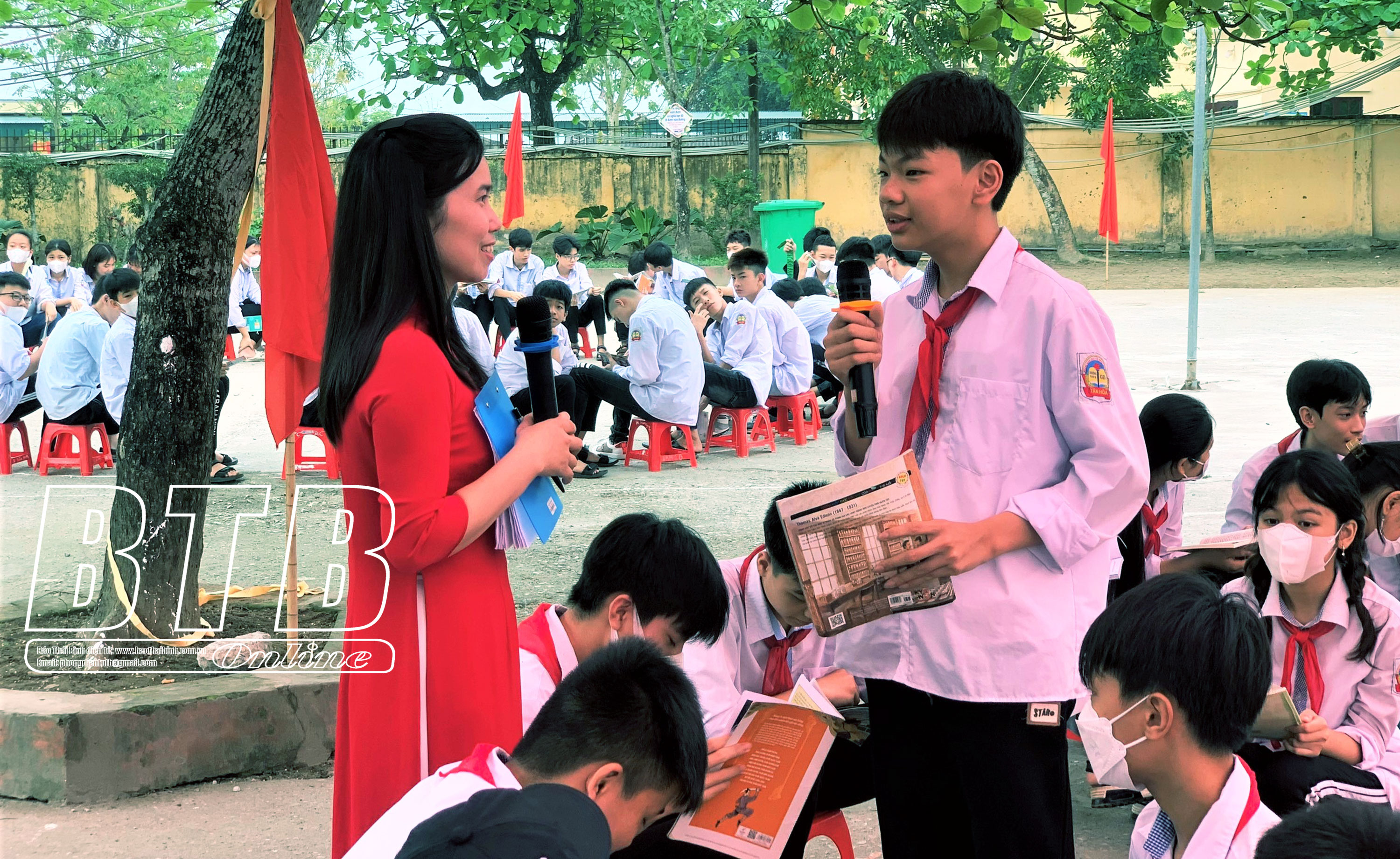 Học sinh Trường THCS Tân Hòa tham gia chương trình giao lưu văn hóa đọc.