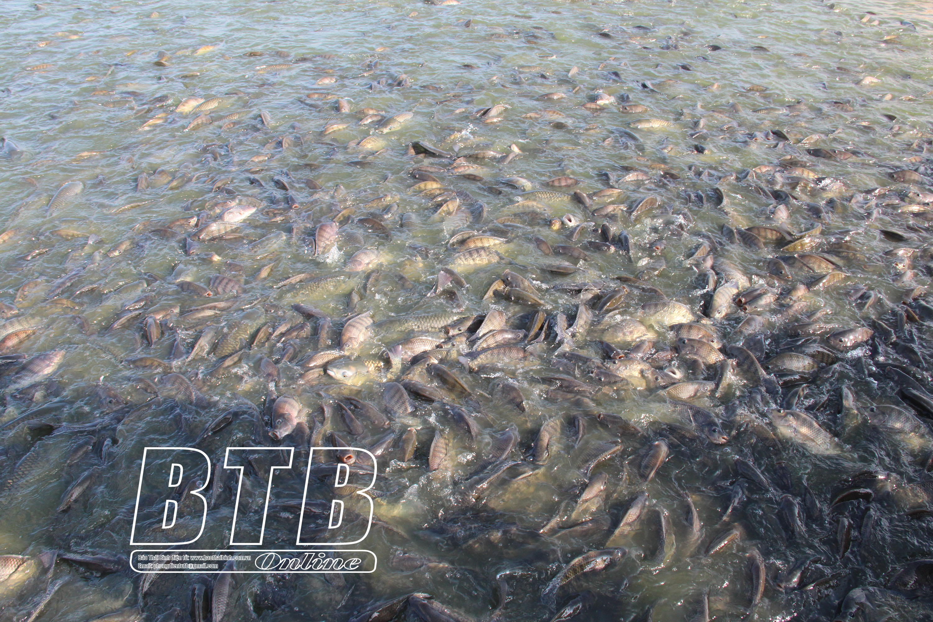 Là một trong những hộ tiên phong nuôi thủy sản trong ao bán nổi, ông Phạm Văn Tính, xã Bình Định có diện tích ao bán nổi nhiều nhất ở huyện Kiến Xương với 5,5ha. Ông Tính quy hoạch thành 5 ao, nuôi thả các loại cá truyền thống và tôm thẻ chân trắng, trong đó có một ao nuôi cá giống để chủ động cho việc sản xuất.