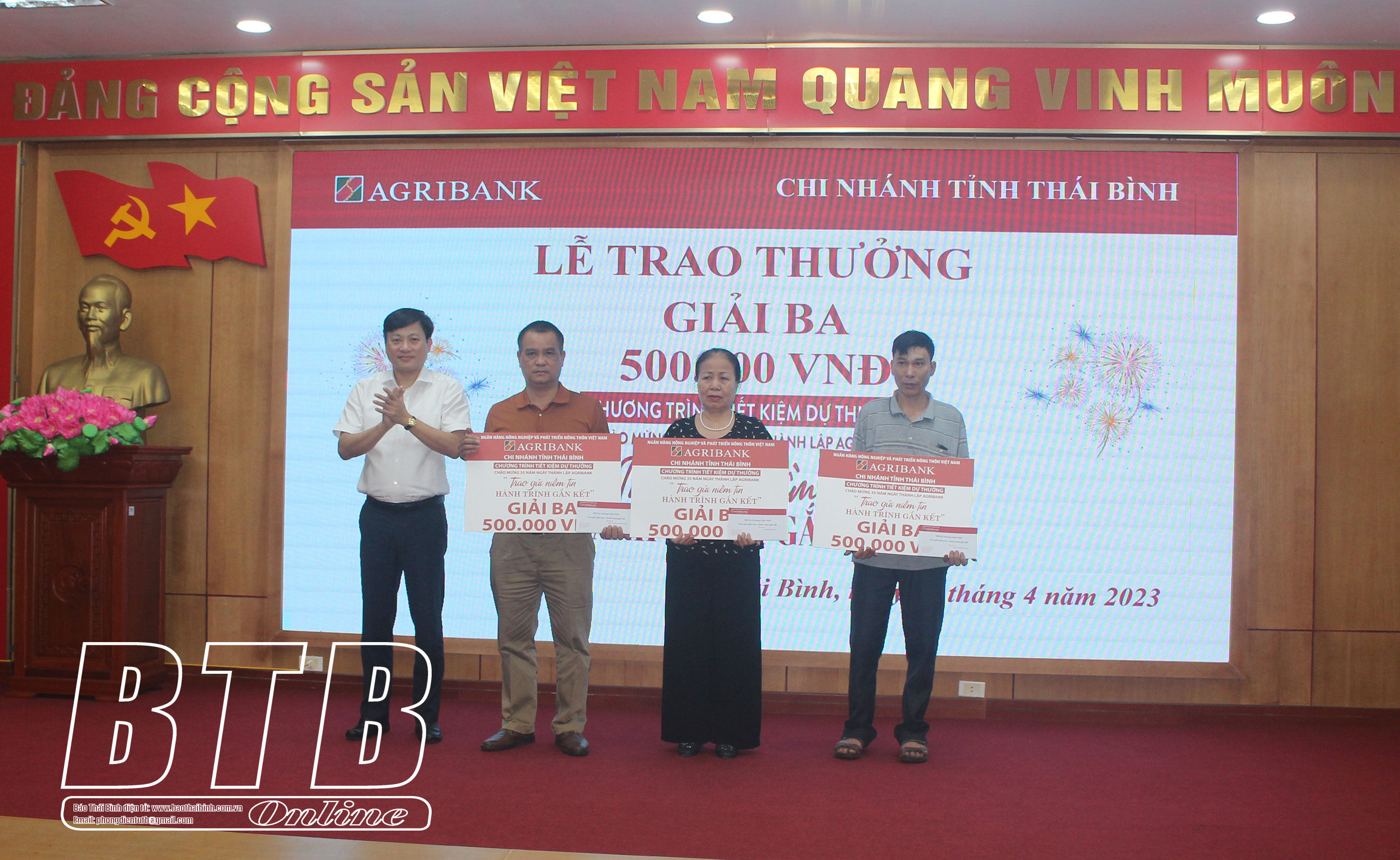 Sáng ngày 20/4, Ngân hàng Nông nghiệp và Phát triển nông thôn Việt Nam (Agribank) Chi nhánh tỉnh Thái Bình tổ chức trao thưởng chương trình tiết kiệm dự thưởng “Trao gửi niềm tin - Hành trình gắn kết”.