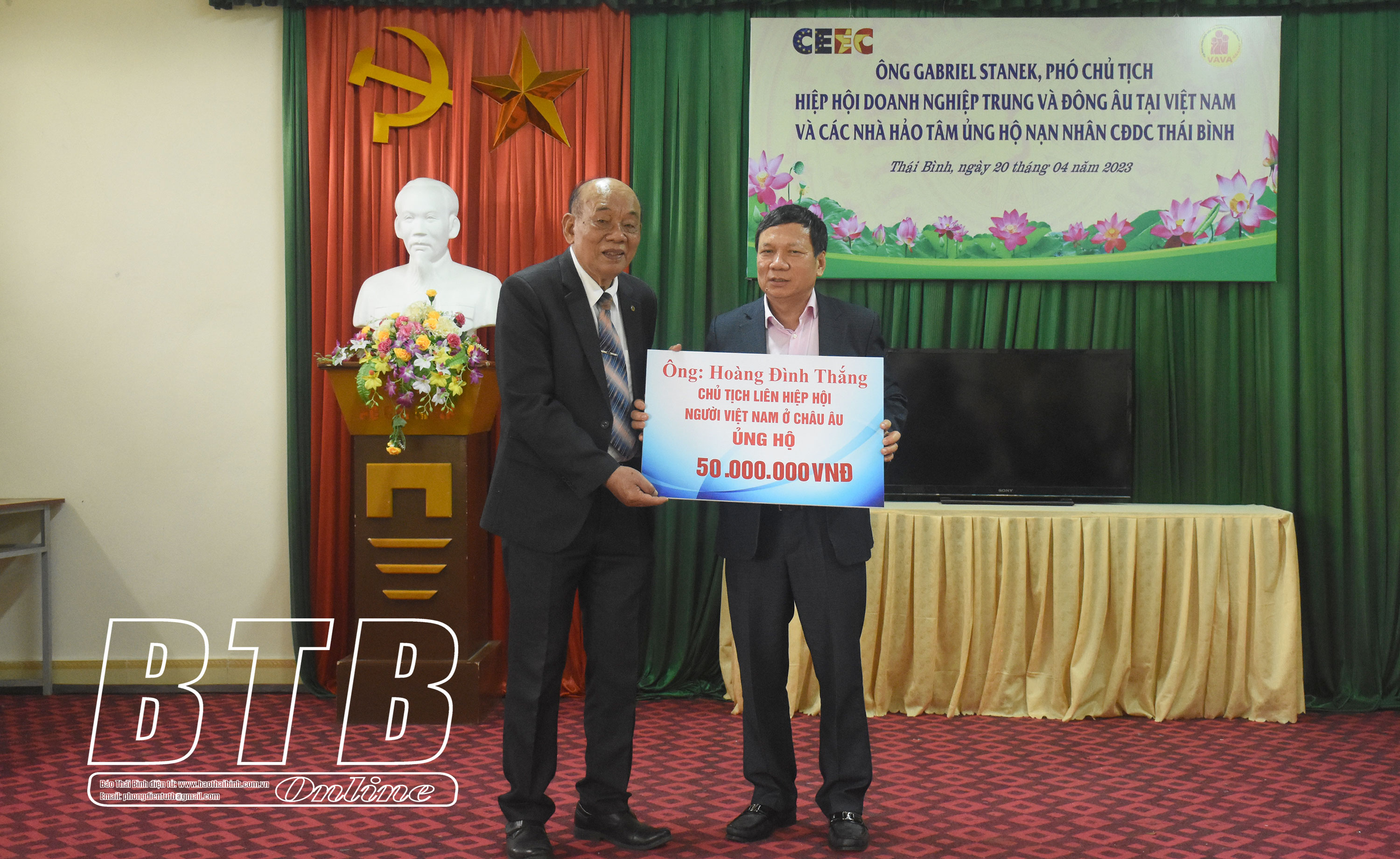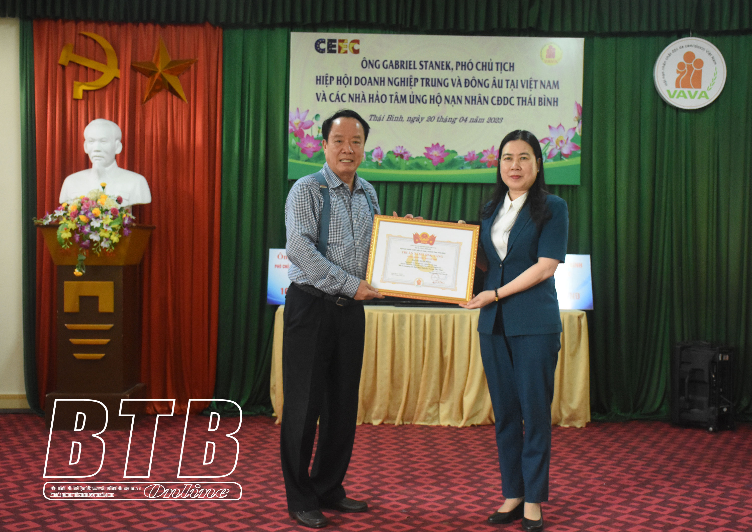 Sáng ngày 20/4, Hội Nạn nhân chất độc da cam/Điôxin tỉnh tổ chức lễ tiếp nhận ủng hộ của Hiệp hội Doanh nghiệp Trung và Đông Âu tại Việt Nam cùng các nhà hảo tâm dành cho Quỹ nạn nhân chất độc da cam/Điôxin tỉnh Thái Bình.