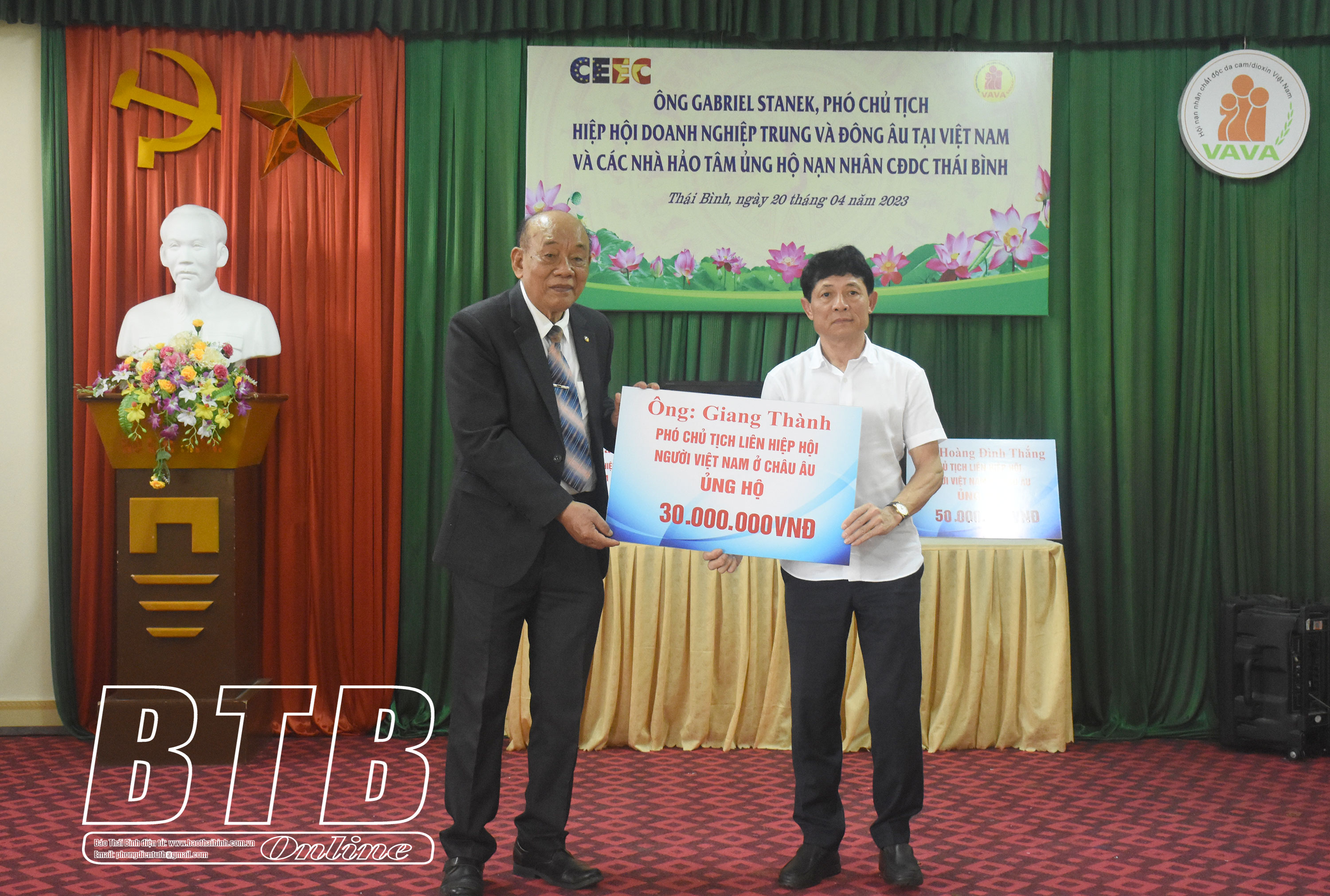 Phát biểu tại buổi lễ, đồng chí Nguyễn Văn Giang, Ủy viên Ban Thường vụ, Trưởng ban Dân vận Tỉnh ủy cảm ơn và bày tỏ xúc động trước sự quan tâm của Hiệp hội Doanh nghiệp Trung và Đông Âu tại Việt Nam cùng các nhà hảo tâm đã dành cho nạn nhân chất độc da cam/Điôxin tỉnh Thái Bình. Đồng chí nhấn mạnh, đó là sự quan tâm rất ý nghĩa, cần thiết và kịp thời bởi nạn nhân chất độc da cam là những người vô cùng bất hạnh và phải chịu nhiều nỗi đau và thể xác lẫn tinh thần.