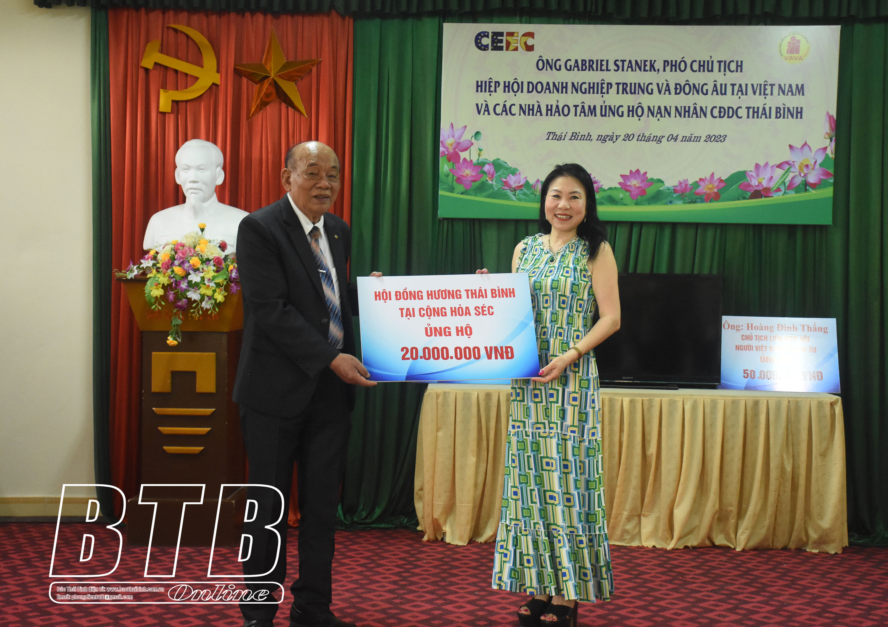 Đại diện Hội đồng hương tỉnh Thái Bình tại Cộng hòa Séc ủng hộ 20 triệu đồng.