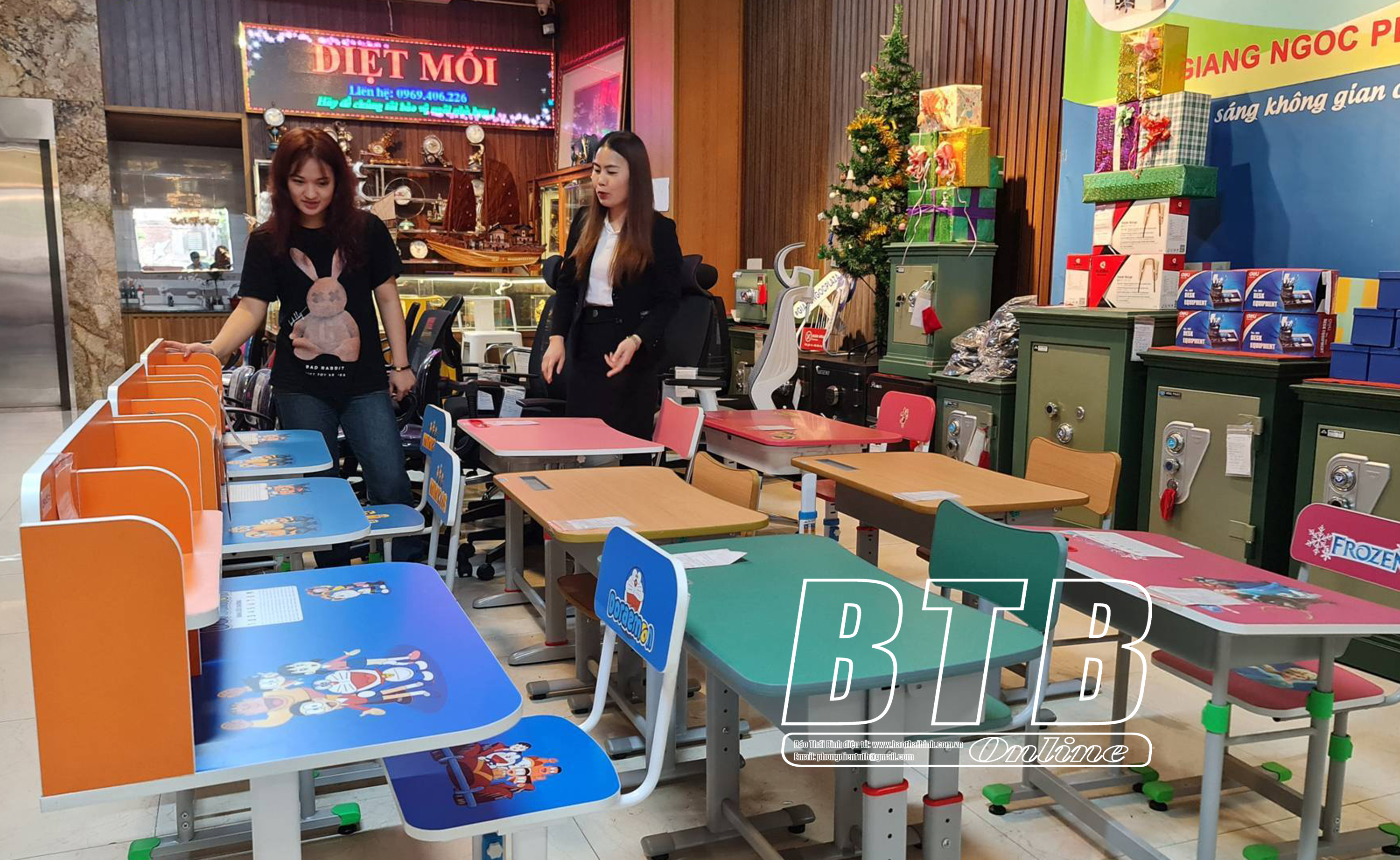 Tại trung tâm mua sắm Giang Ngọc Plaza ở phố Hai Bà Trưng, thành phố Thái Bình, các sản phẩm đồ gỗ nội thất, văn phòng, gia dụng được trưng bày theo mô hình giúp khách hàng dễ quan sát, trải nghiệm và cảm nhận.