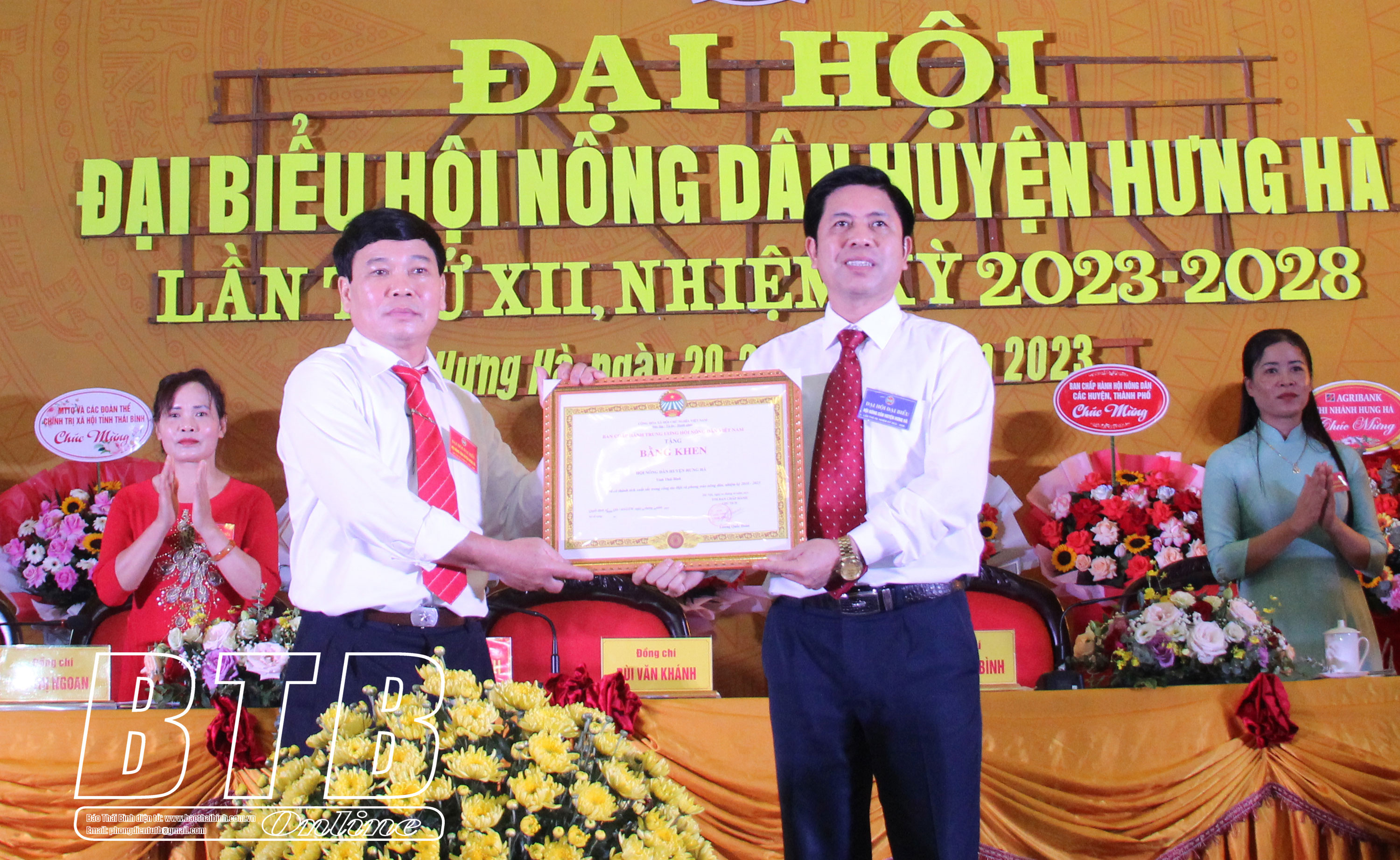 Tại Đại hội, lãnh đạo Hội Nông dân tỉnh trao bằng khen của Trung ương Hội Nông dân Việt Nam cho Hội Nông dân huyện Hưng Hà.