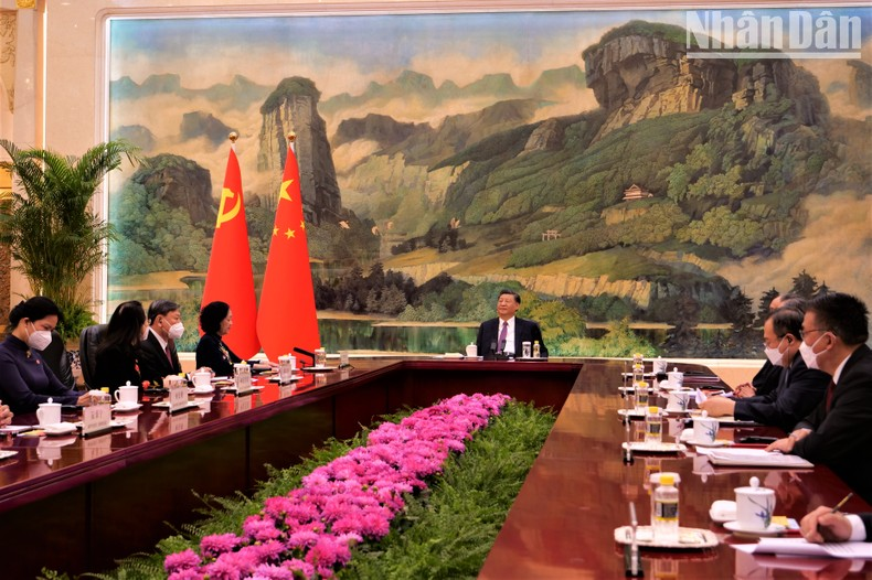 Tại các cuộc hội đàm, hội kiến, lãnh đạo hai bên đánh giá cao những tiến triển tích cực trong quan hệ hai Đảng, hai nước thời gian qua, đặc biệt là sau chuyến thăm chính thức Trung Quốc hết sức thành công của Tổng Bí thư Nguyễn Phú Trọng tháng 10/2022.