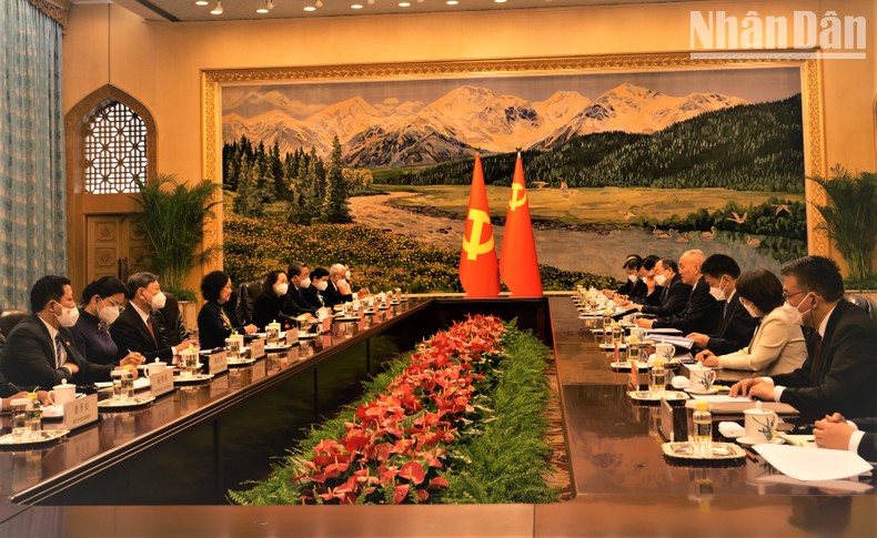Thường trực Ban Bí thư Trương Thị Mai nhấn mạnh, chuyến thăm của Đoàn nhằm quán triệt thực hiện những nhận thức chung quan trọng giữa lãnh đạo cấp cao của hai Đảng, hai nước, nhất là những nội dung trong Tuyên bố chung về tiếp tục thúc đẩy và làm sâu sắc hơn nữa quan hệ đối tác hợp tác chiến lược toàn diện Việt Nam-Trung Quốc đạt được trong chuyến thăm Trung Quốc của Tổng Bí thư Nguyễn Phú Trọng. Trên cơ sở đường lối đối ngoại độc lập, tự chủ, hòa bình, hữu nghị, hợp tác và phát triển, đa phương hóa, đa dạng hóa quan hệ, Việt Nam luôn coi trọng và ưu tiên hàng đầu phát triển quan hệ với Trung Quốc theo phương châm “16 chữ” và tinh thần “4 tốt”.