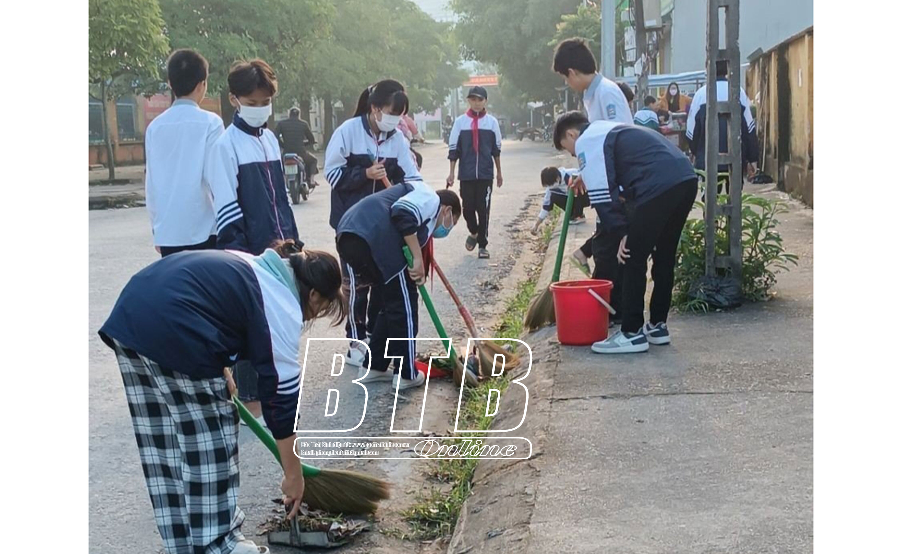 Học sinh Trường THCS Phú Xuân (thành phố Thái Bình) thường xuyên vệ sinh trường, lớp.