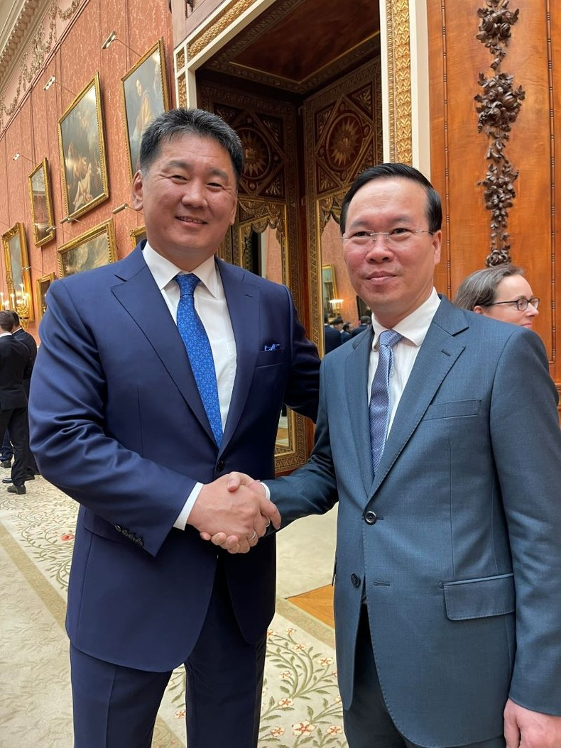 Chủ tịch nước Võ Văn Thưởng gặp Tổng thống Mông Cổ Ukhnaagiin Khürelsükh.