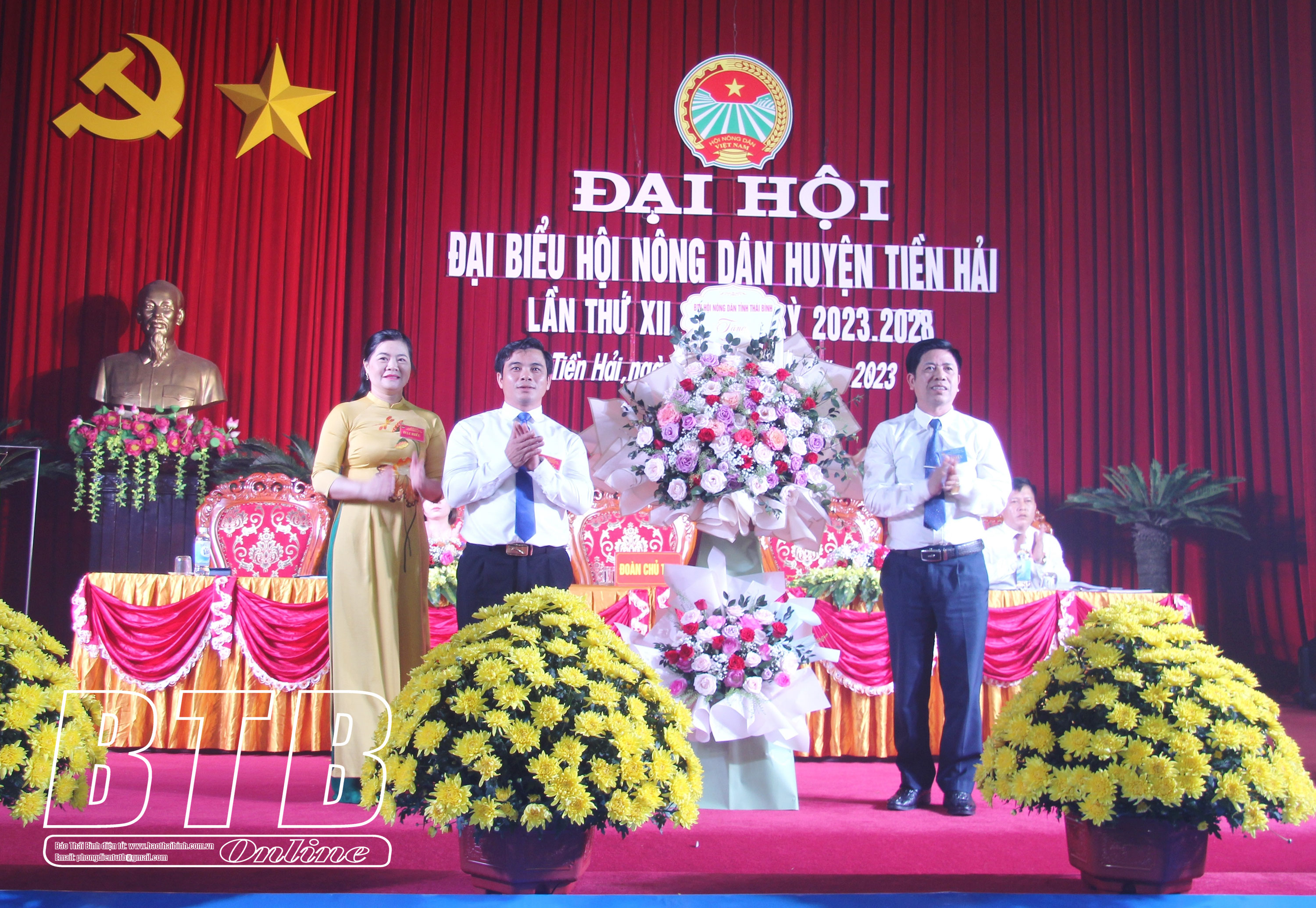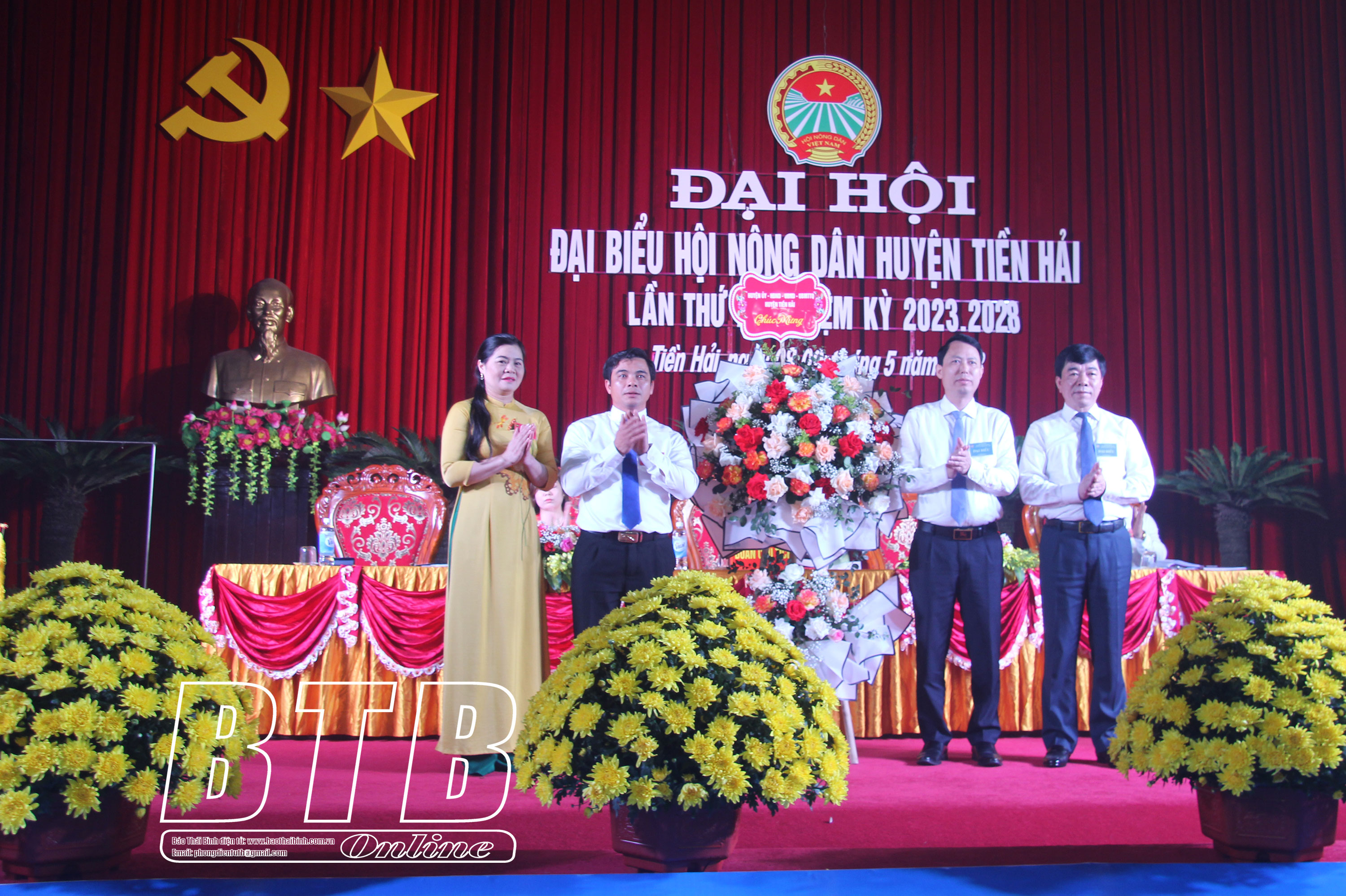 Lãnh đạo Hội Nông dân tỉnh tặng hoa chúc mừng Đại hội.Lãnh đạo Huyện ủy Tiền Hải tặng hoa chúc mừng Đại hội.