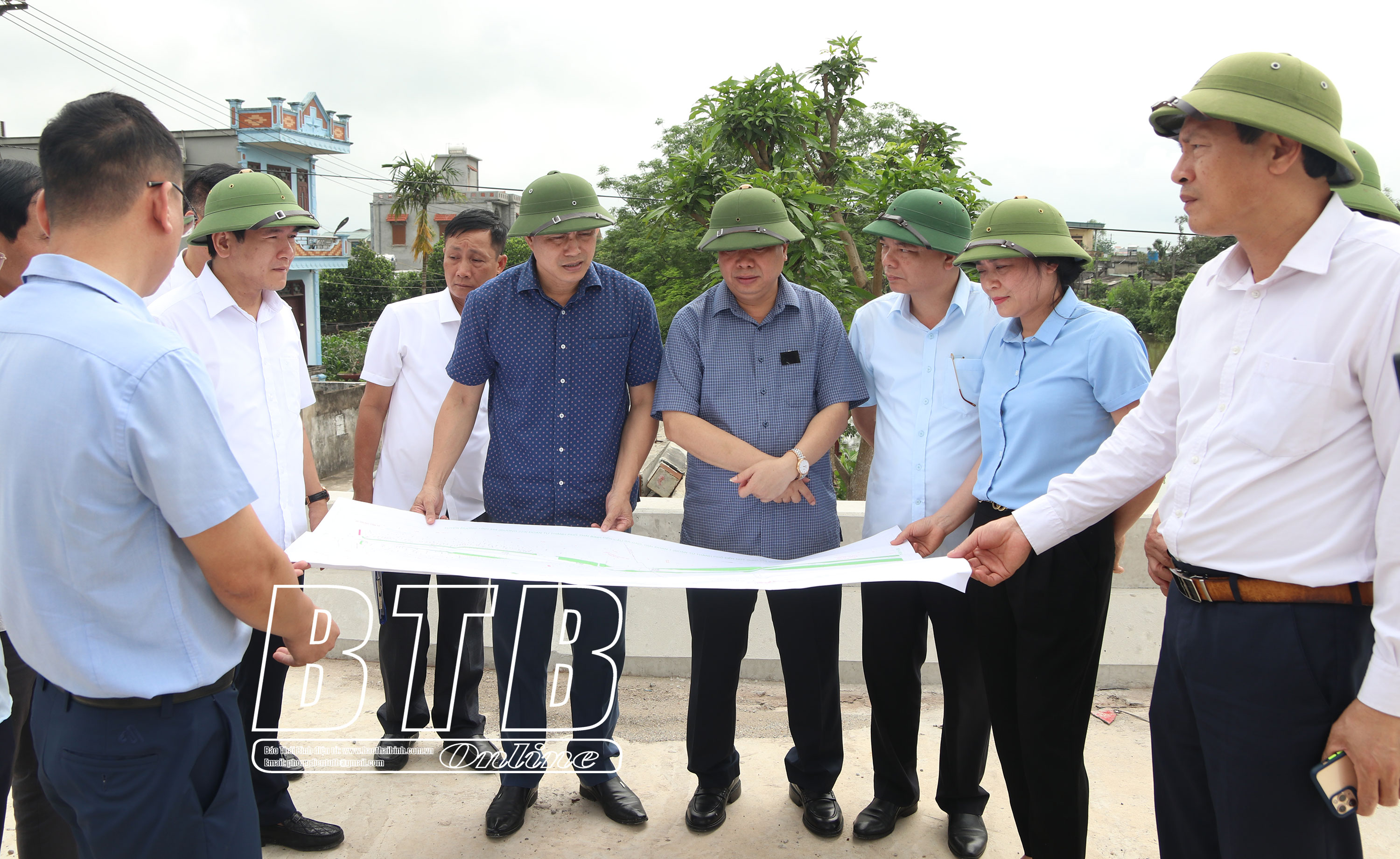 Kiểm tra tiến độ thi công giai đoạn 2 của dự án tại đê tả Hồng Hà II, thuộc địa phận xã Vũ Vân (Vũ Thư), đồng chí Phó Chủ tịch thường trực UBND tỉnh thống nhất với đề xuất của Ban Quản lý Dự án đầu tư xây dựng các công trình giao thông tỉnh về việc điều chỉnh tại nút giao với đê tả Hồng Hà II nhằm bảo đảm an toàn giao thông tại khu vực này; đồng thời đề nghị các sở, ban, ngành và huyện Vũ Thư cần tăng cường công tác phối hợp, chỉ đạo các đơn vị chức năng và các địa phương rà soát bản đồ, tiến hành trích lục và lên phương án kiểm đếm, tái định cư, đẩy nhanh GPMB phục vụ triển khai dự án.